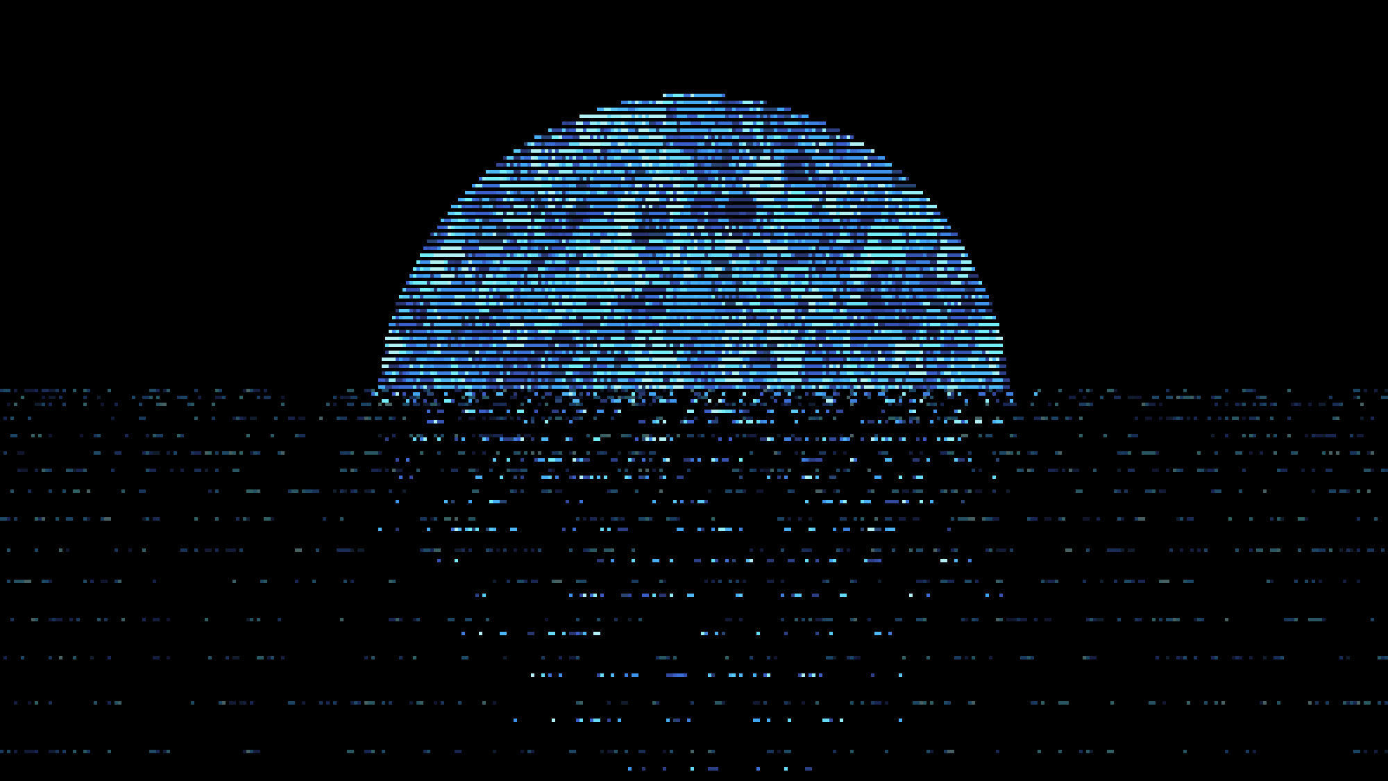 Description: A calm sea, built from tiny bits, reflects the soft light of a half moon just before it slips below the horizon. Sky and water merge in a silent moment, where the night breaks into pixels as it slowly fades away.