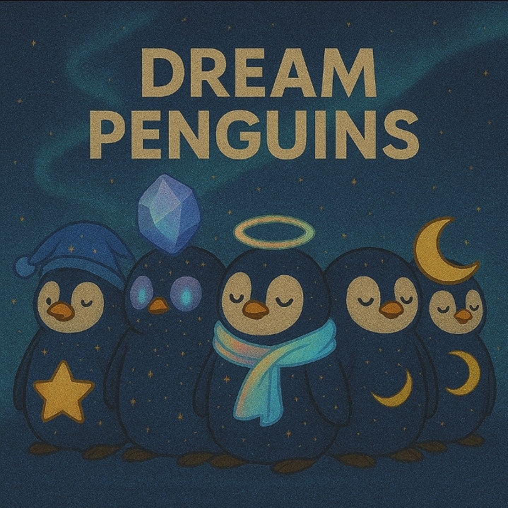 Description: A magical NFT collection of celestial penguins glowing under the aurora each one dreaming with stars moons and mystical charm