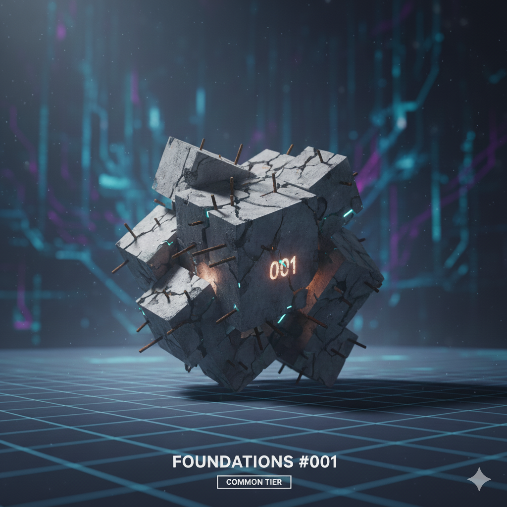 Description: 3D generative art exploring the mind's architecture. From basic "Foundations" (concrete blocks of belief) to rare "Blueprints" (glowing, complex mental maps). Build your innerverse.