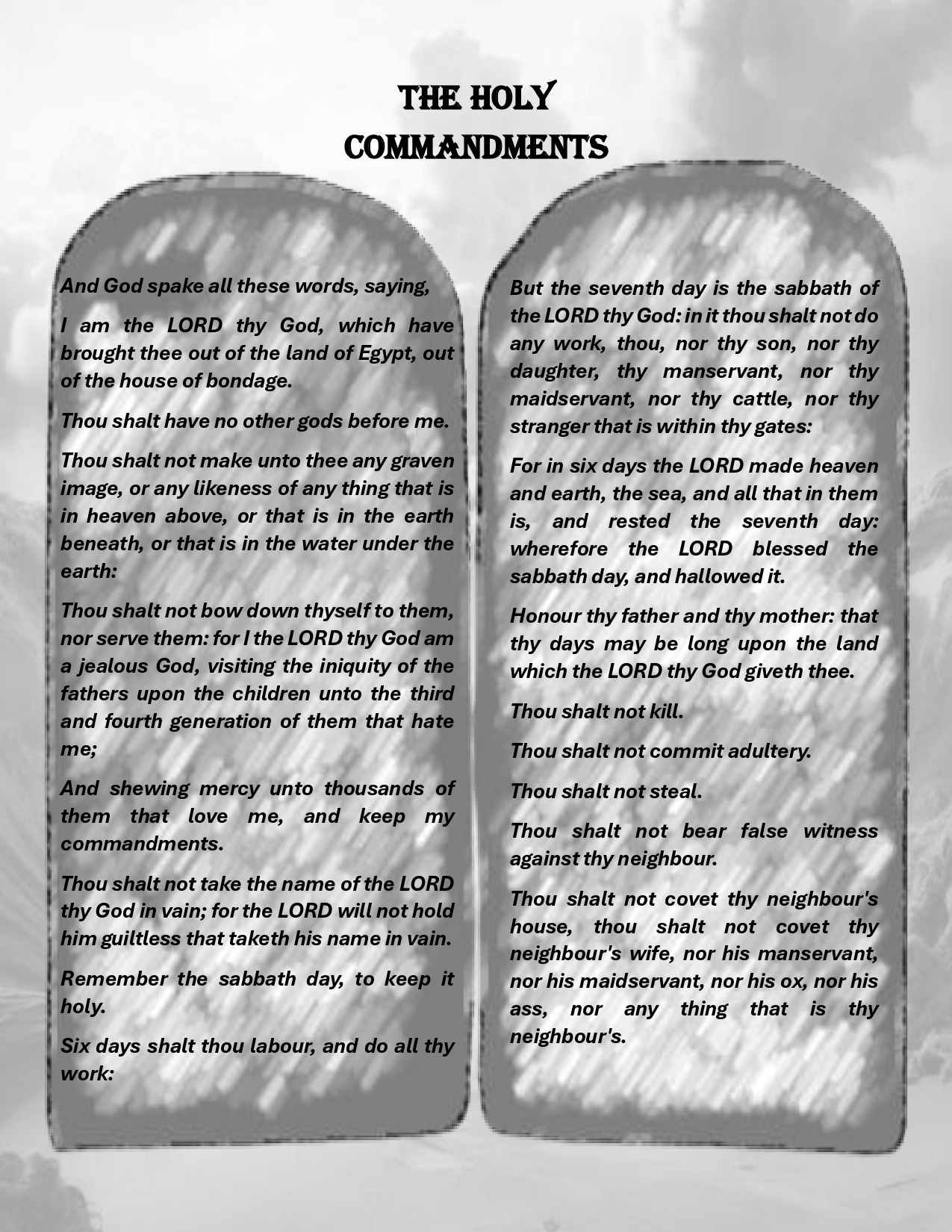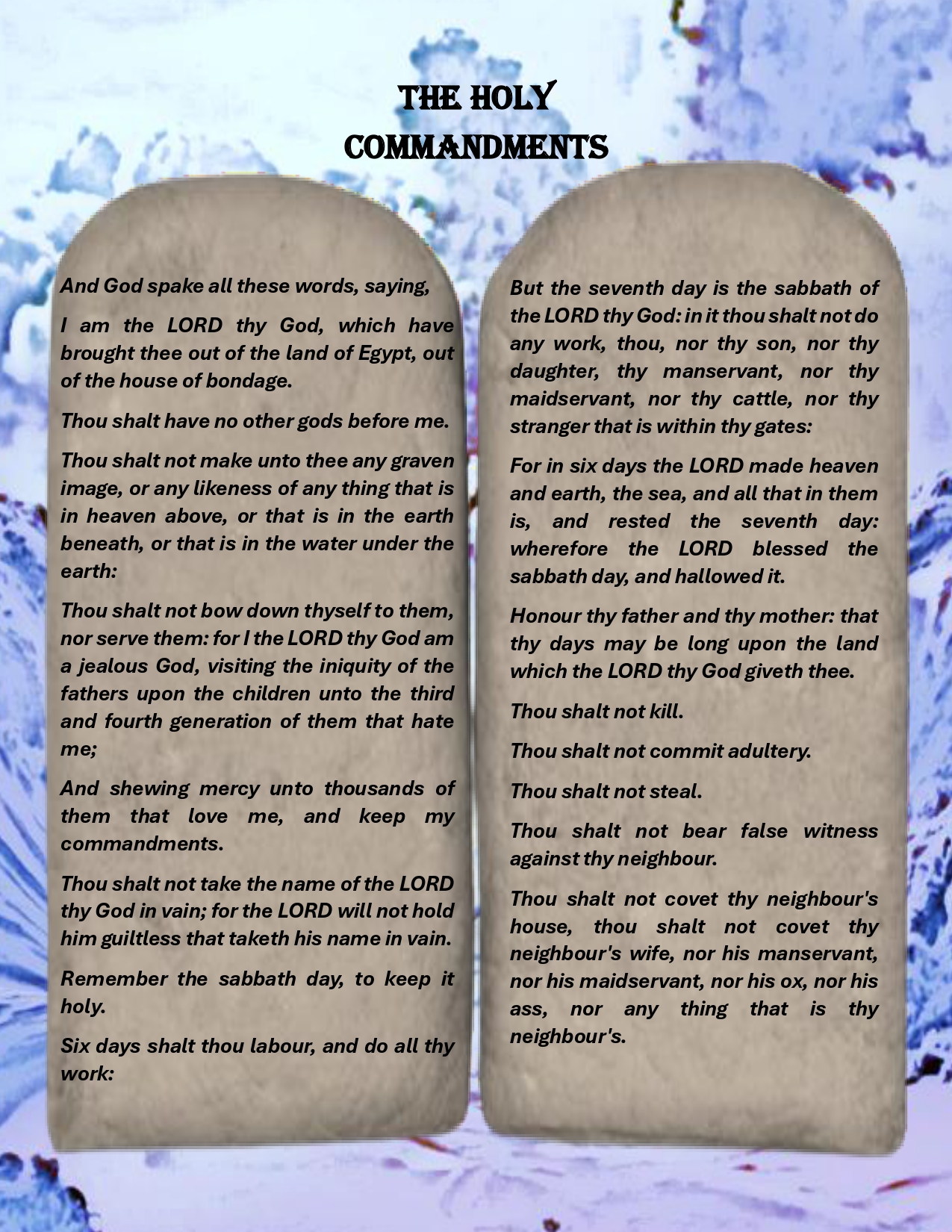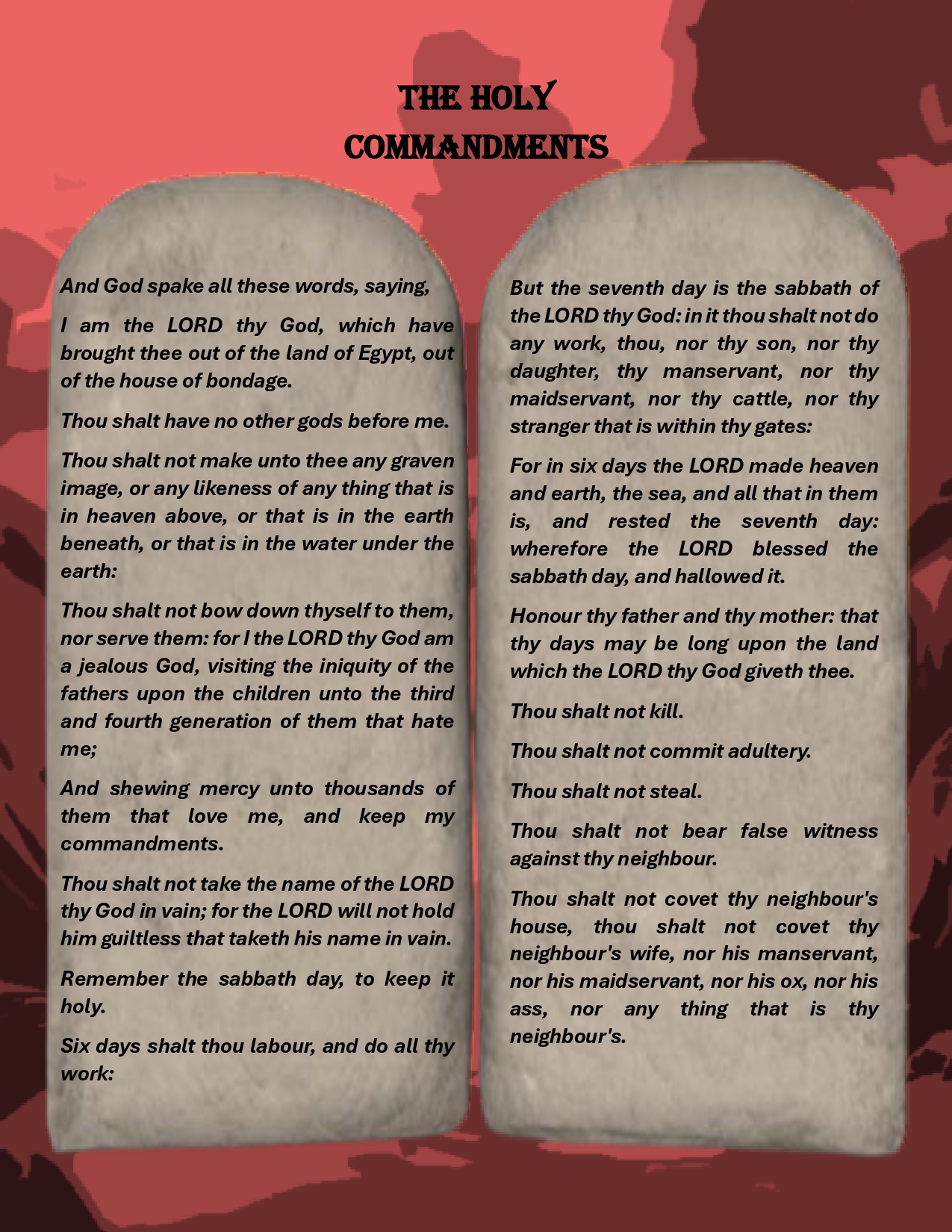Description: The Commandments: The third of the eleven parts of the collection inspired by the Sacred Law.