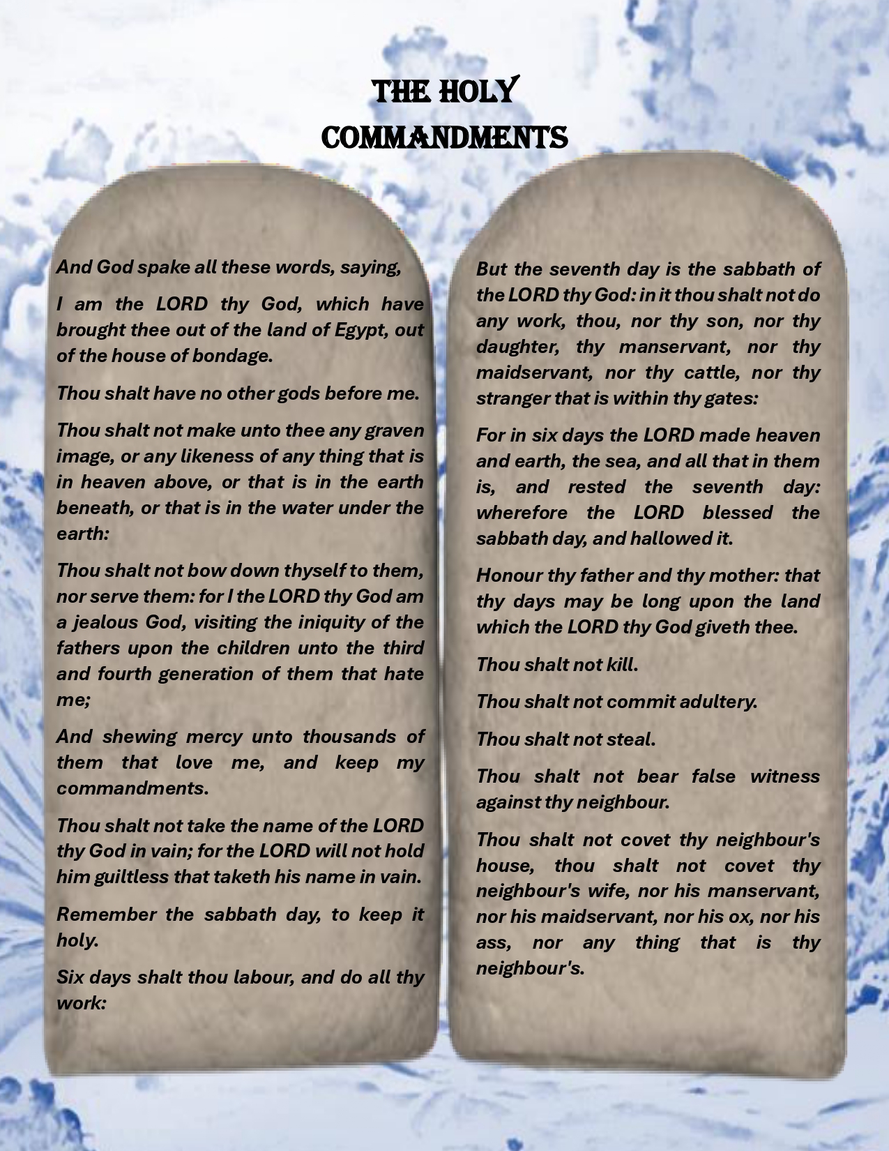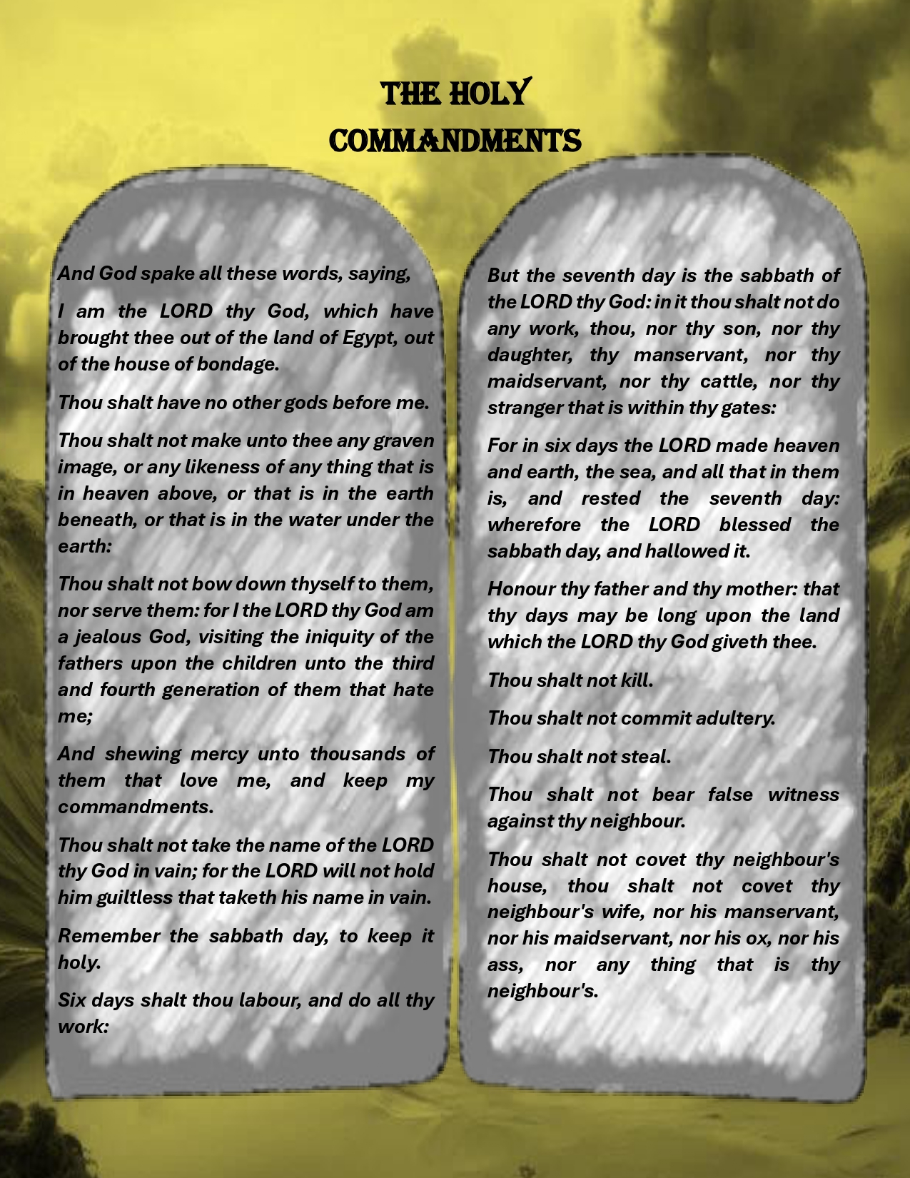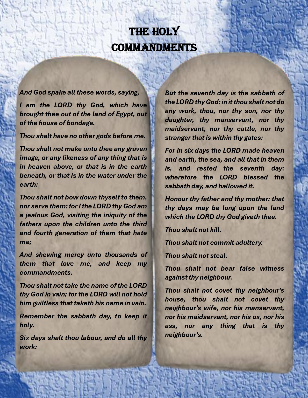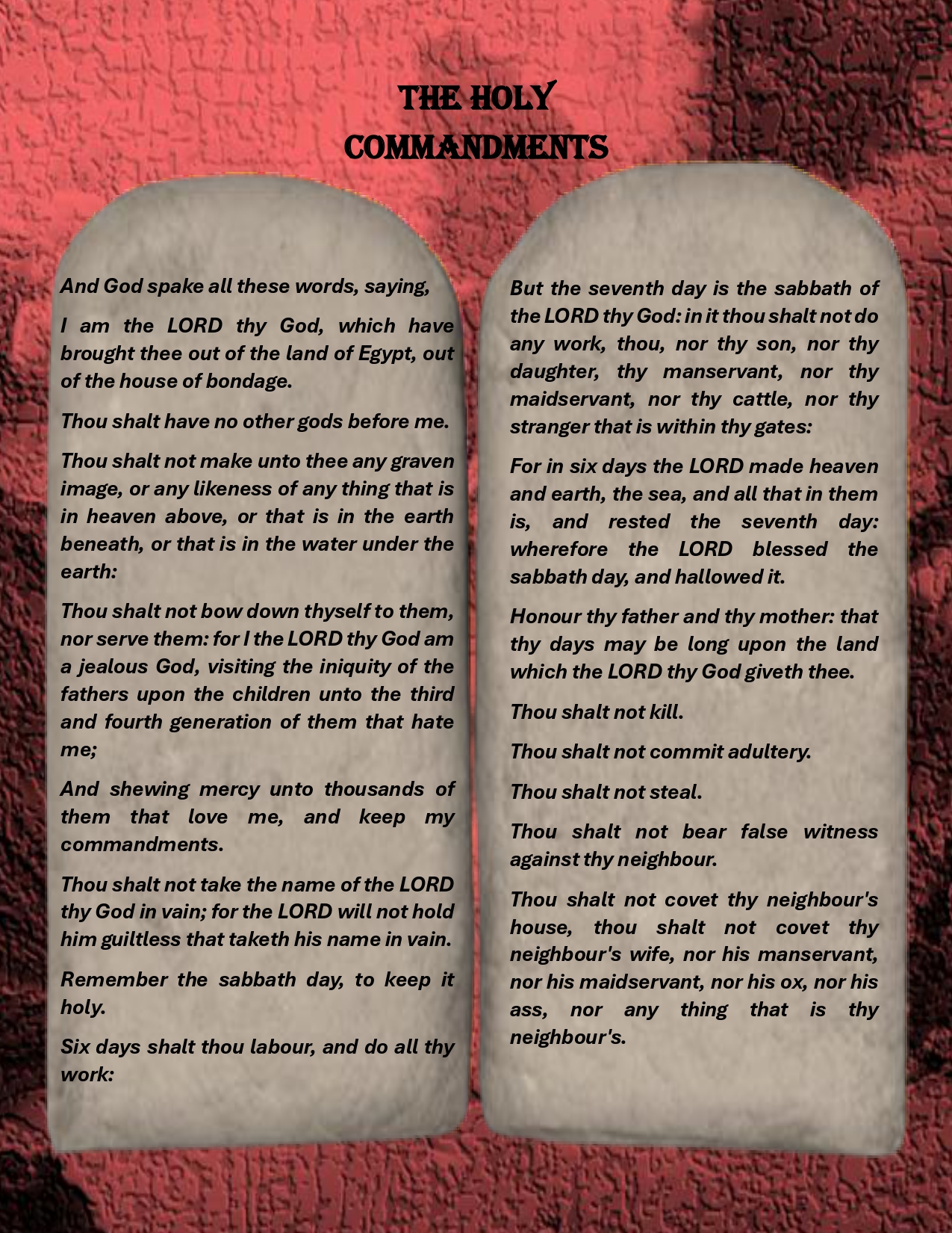 Description: The Commandments: The third of the eleven parts of the collection inspired by the Sacred Law.