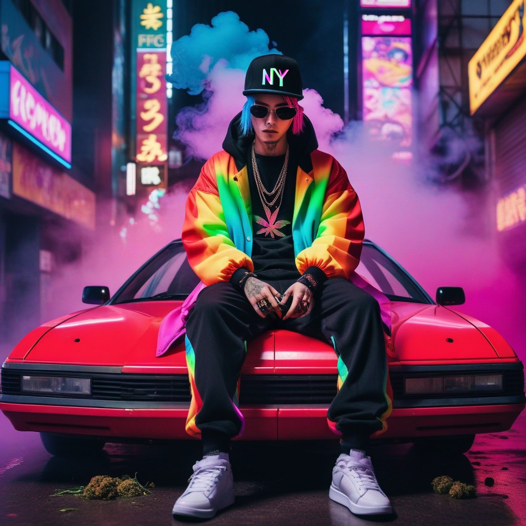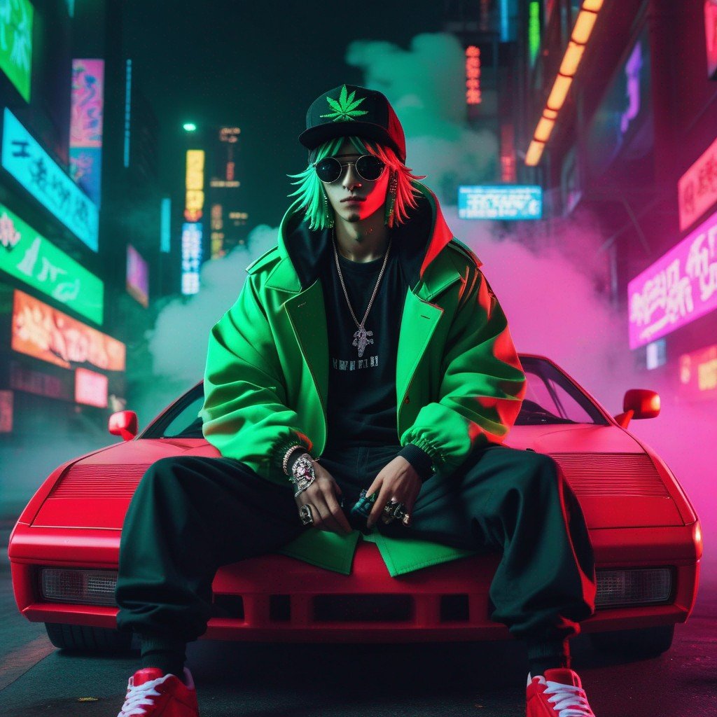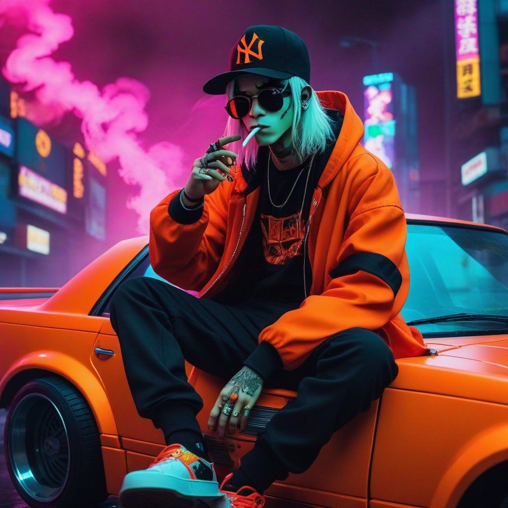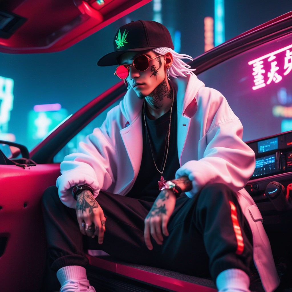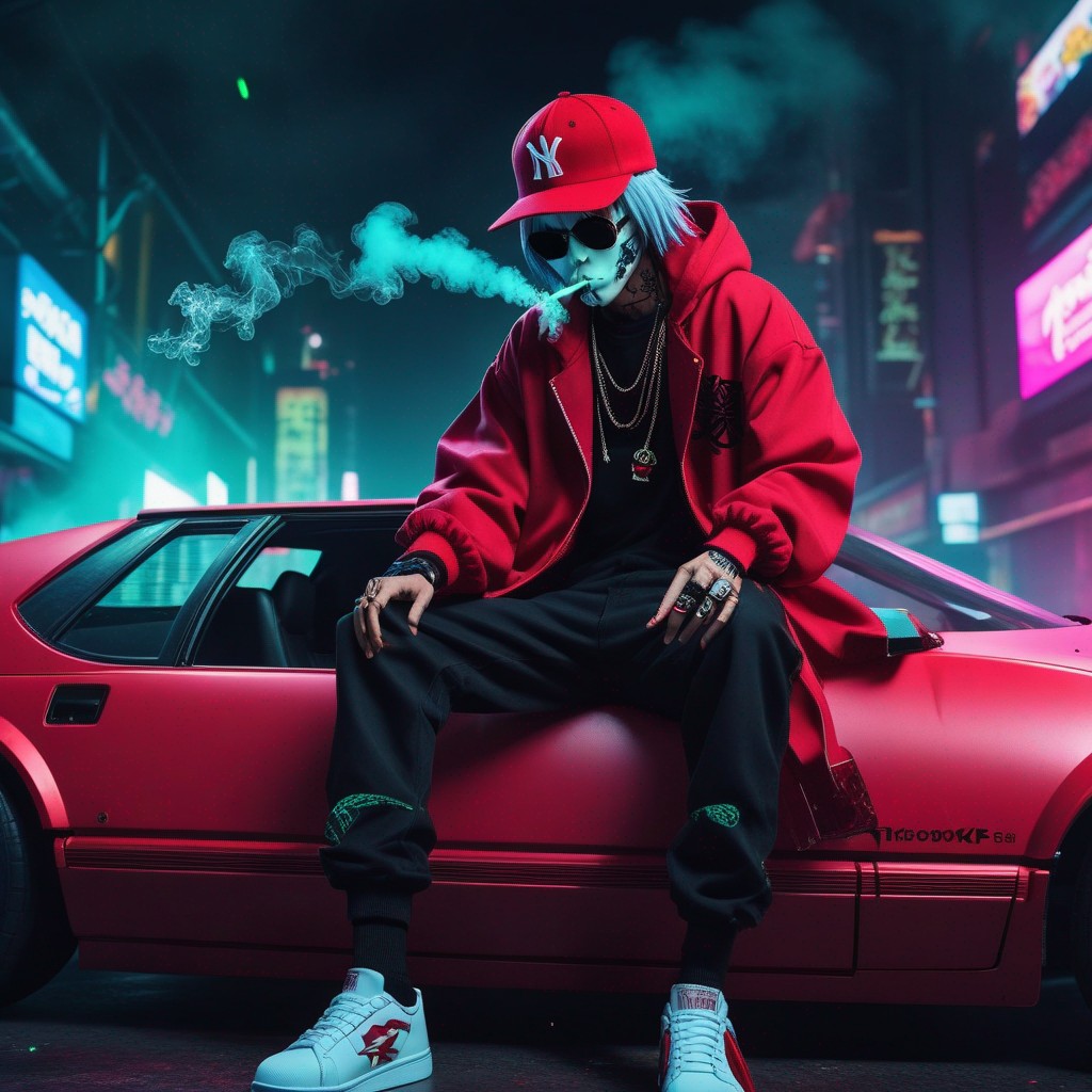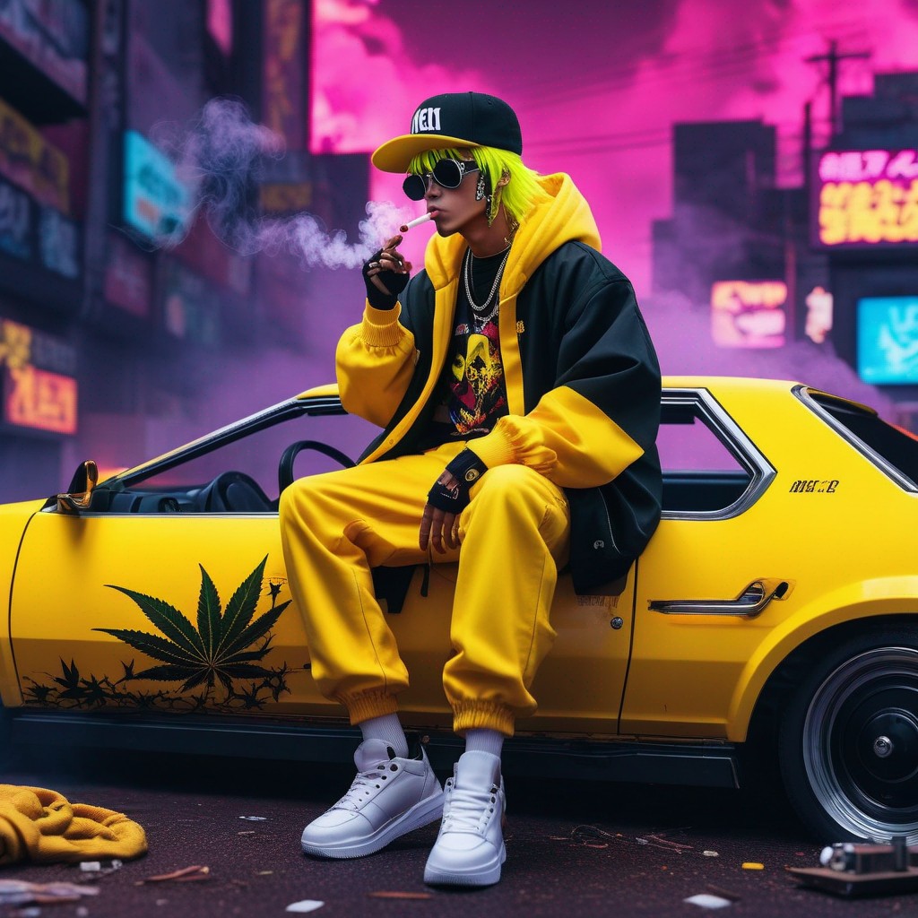 Description: An NFT masterpiece depicting the enigmatic beauty of a solitary figure enveloped in swirling tendrils of smoke within the confines of a sleek automobile.