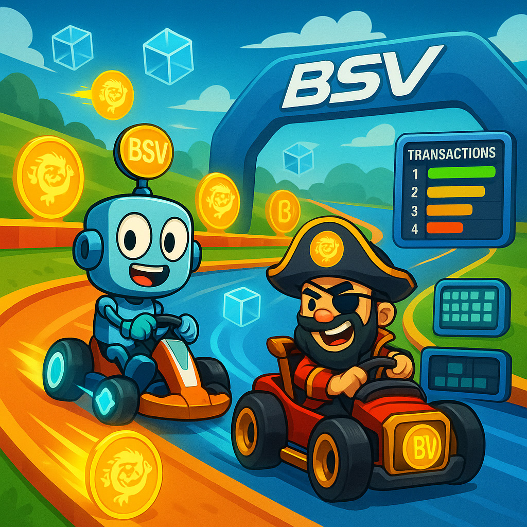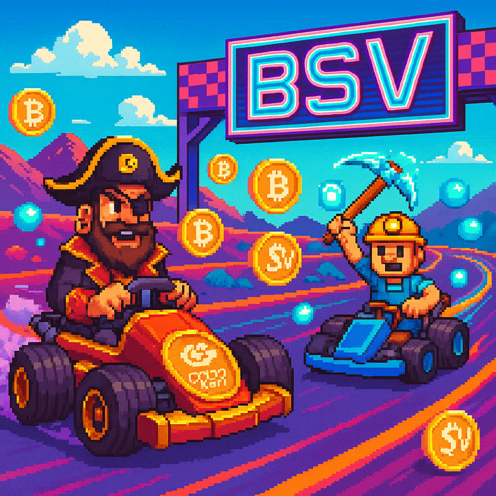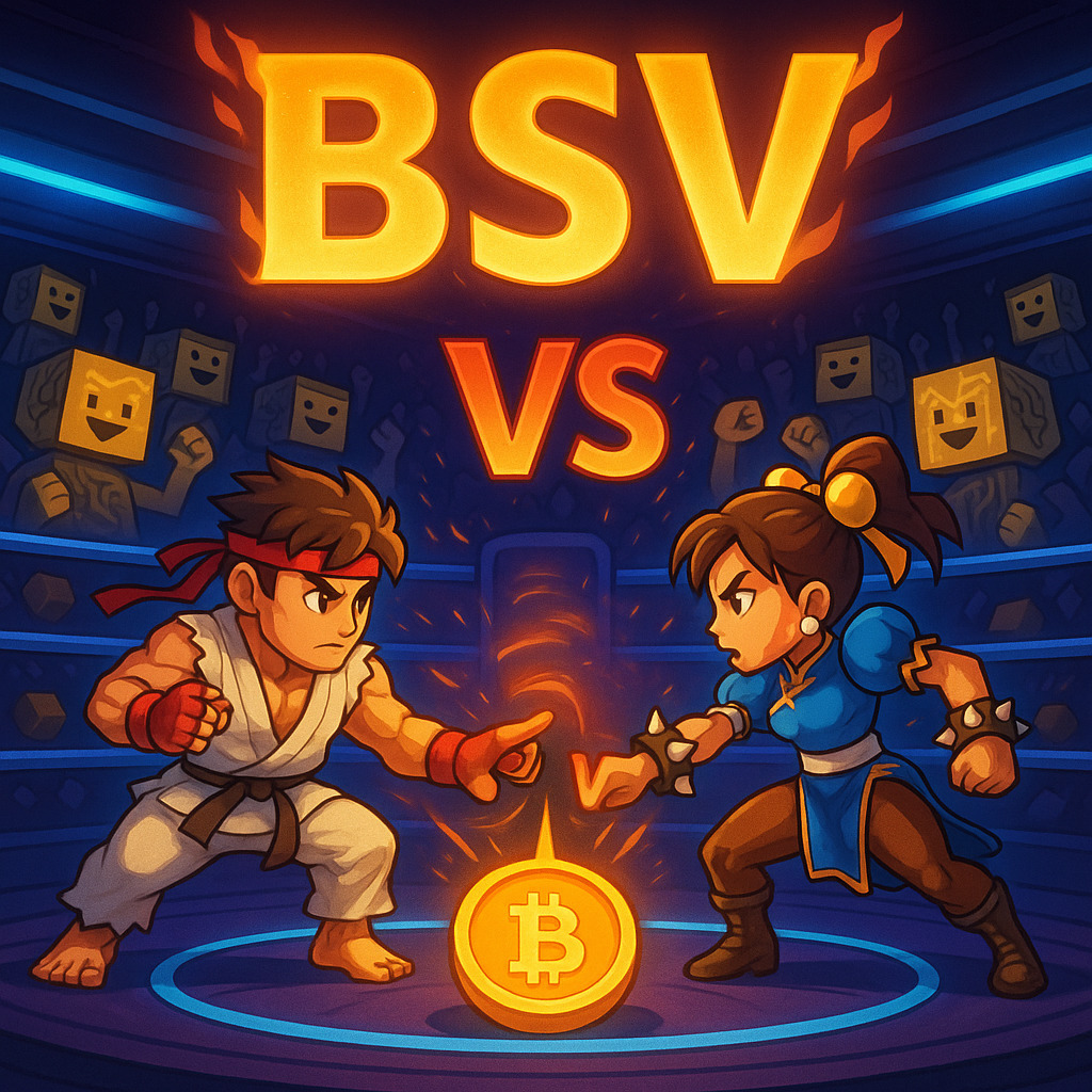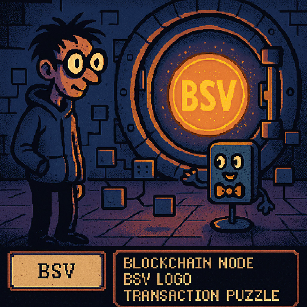 Description: A vibrant collection of video game-inspired images celebrating the BSV cryptocurrency, packed with quirky characters, a colorful blockchain aesthetic, and interactive crypto challenges.