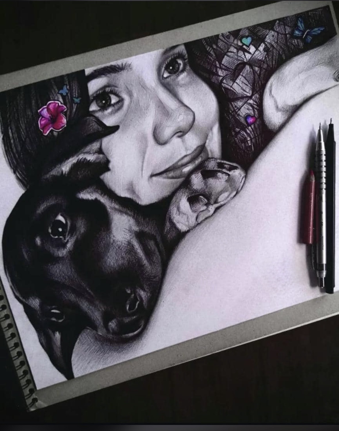 Description: Unique handmade drawing with pencils of me and a great canine friend who left this world a few years ago, I want it to carry the ZoideNFT stamp.
