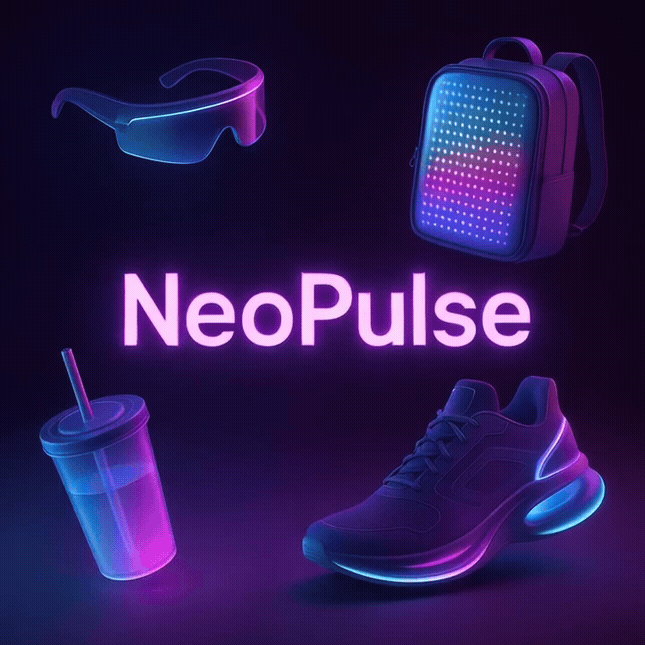 Description: NeoPulse is a futuristic digital fashion collection fusing kinetic energy, translucent materials, and reactive LED design for the next-gen avatar experience.