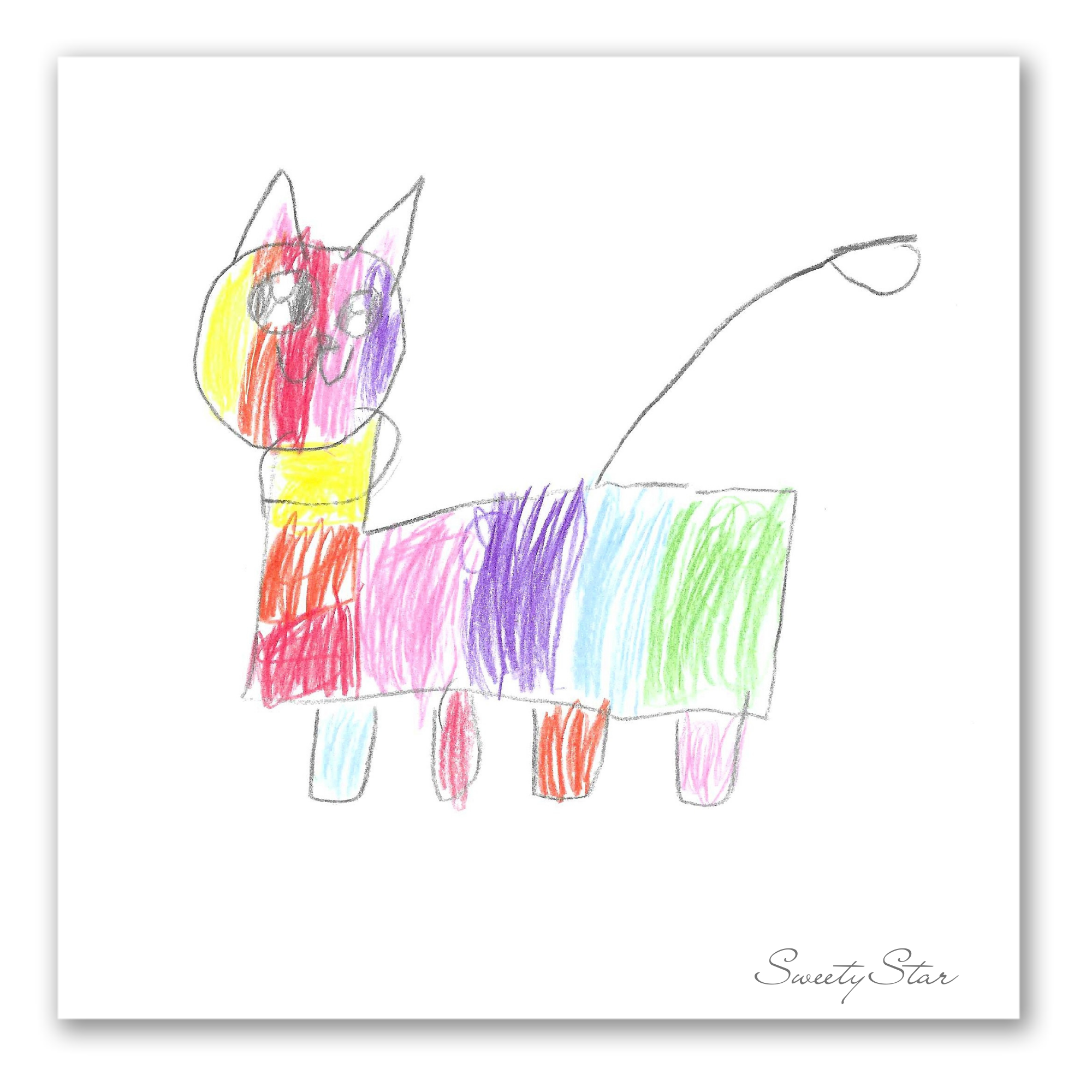 Description: The second chapter by Sweety Star. Hand-drawn animals reimagined in bold rainbow strokes. Each piece reflects raw creativity, scanned and preserved as part of her growing universe.