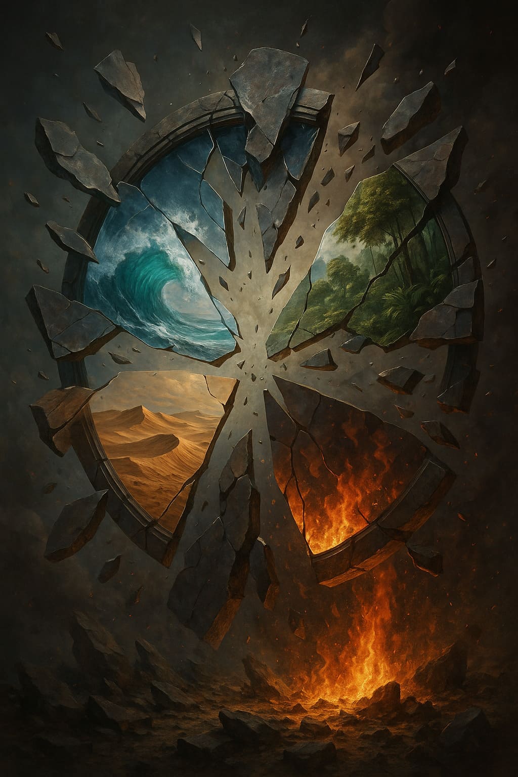 Description: A collection of surreal portals where broken fragments reveal worlds that should never coexist, yet converge in dreamlike harmony.