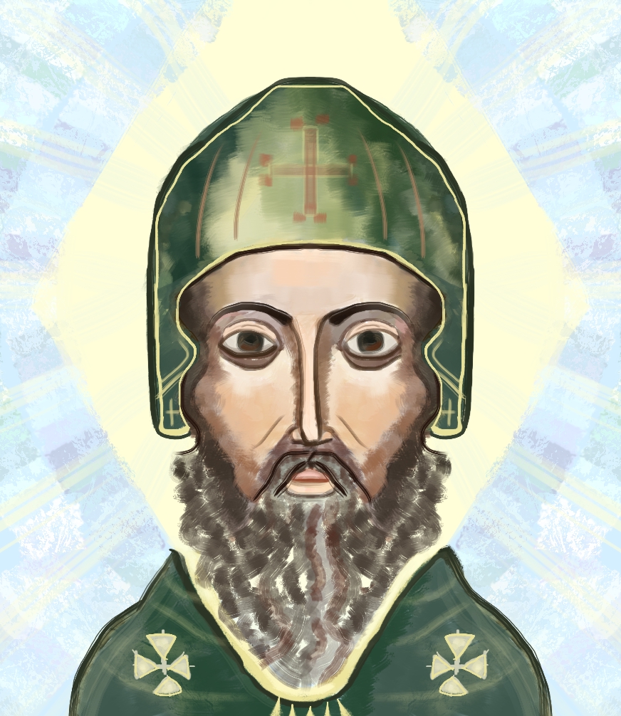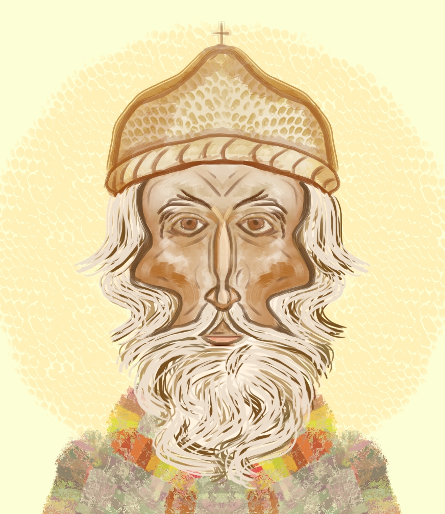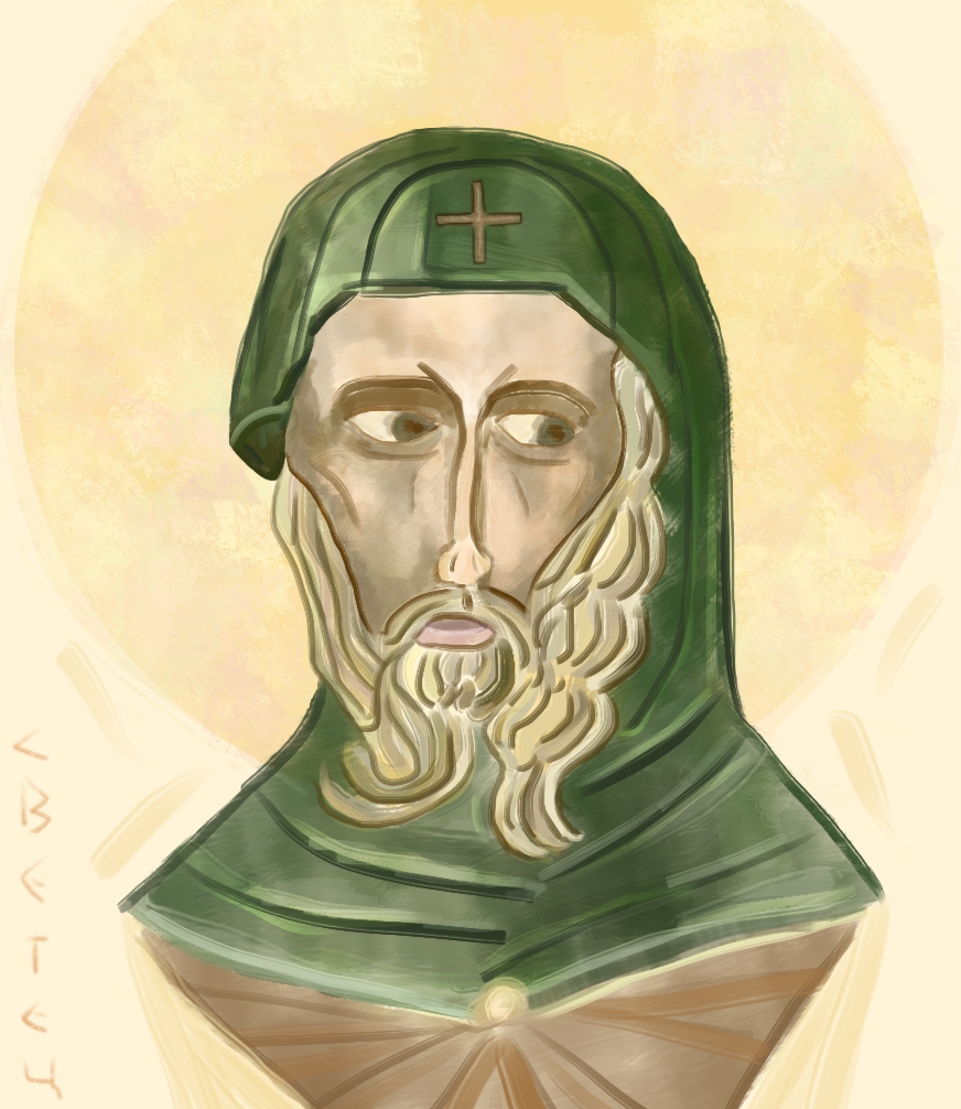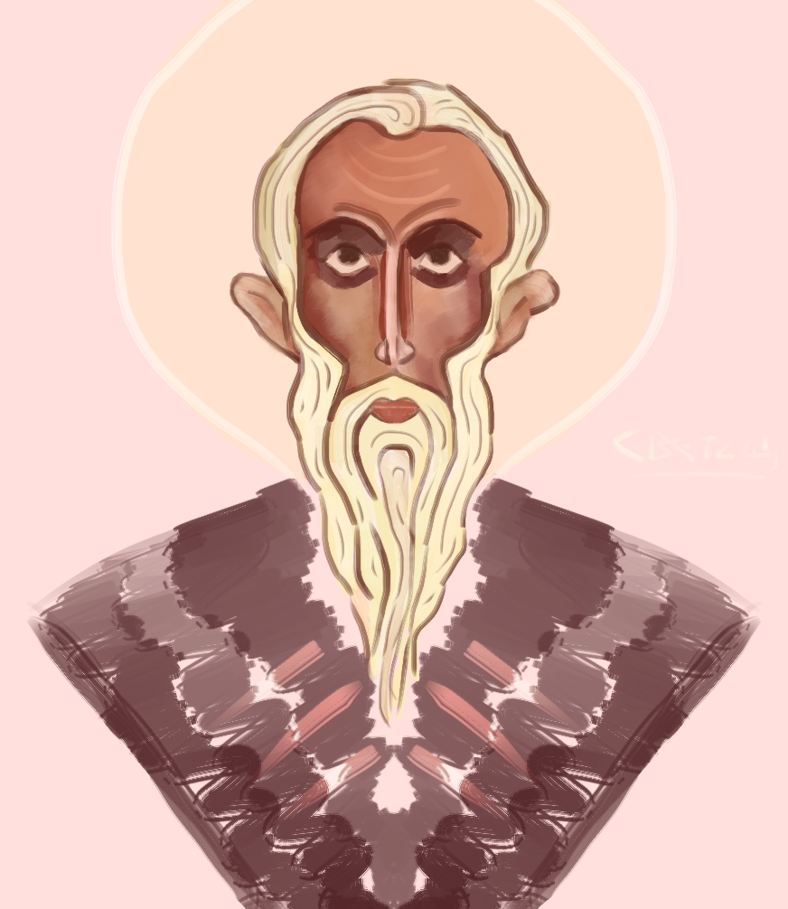Description: 5 hand drawn saints: Anthony, John, Simeon, Spyridon and Theodosius.