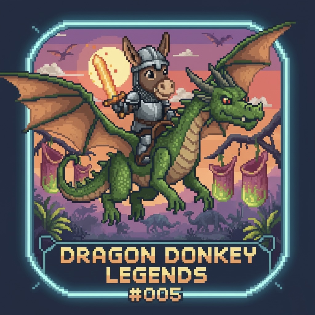 Description: Dragon Donkey Legends narrates the pixelated adventures of a brave donkey knight and his dragon. Explore fantastic worlds and epic moments, celebrating friendship and courage. A retro collection full of charm and legendary action.