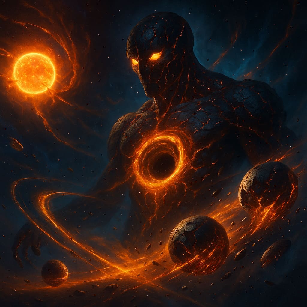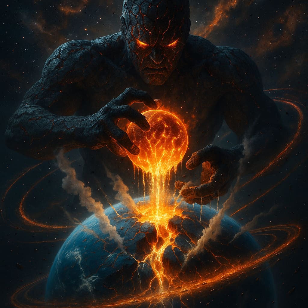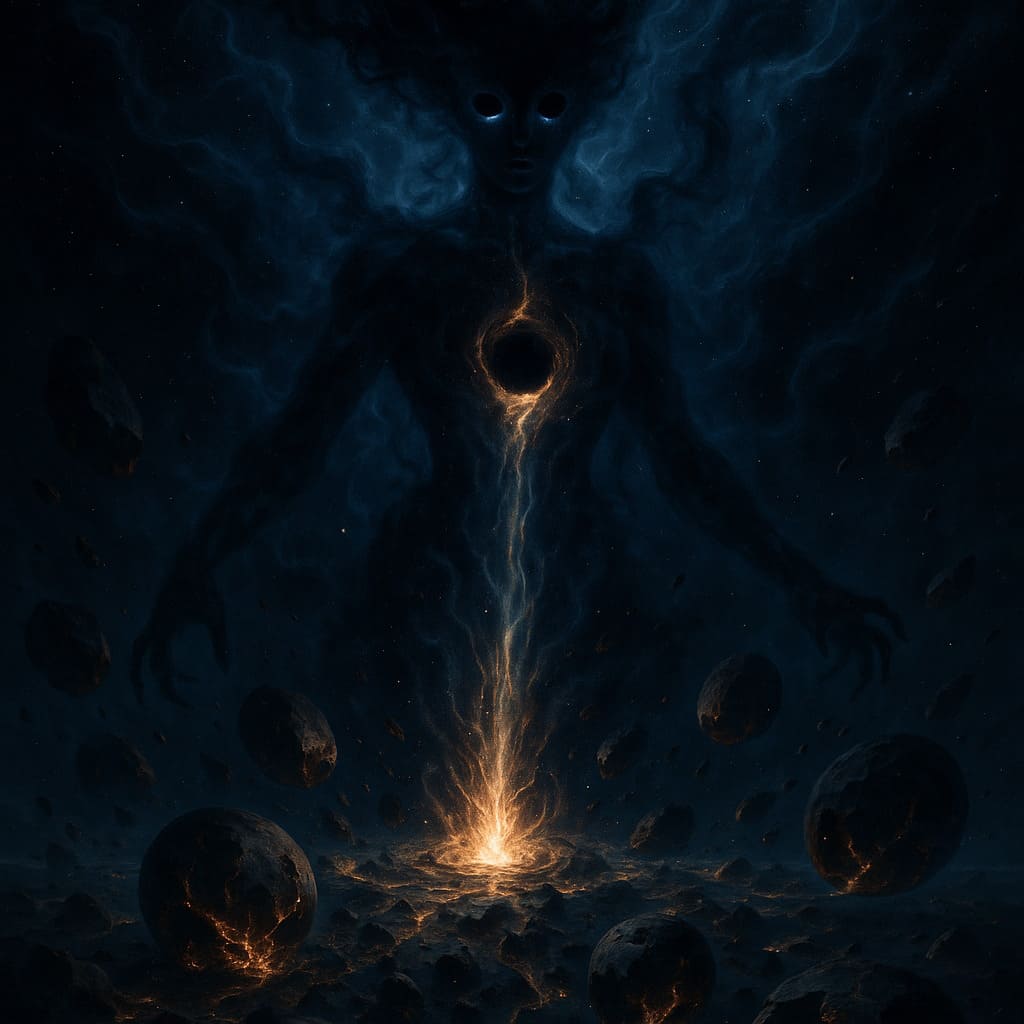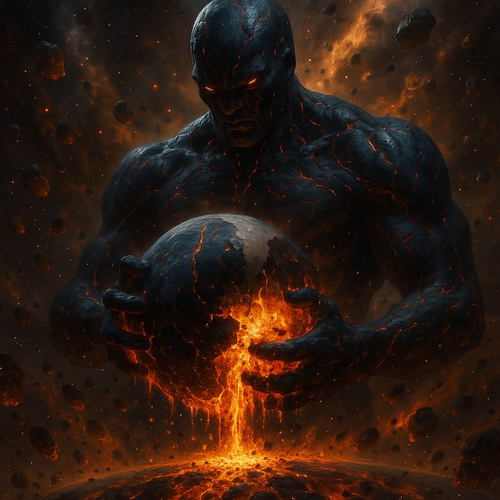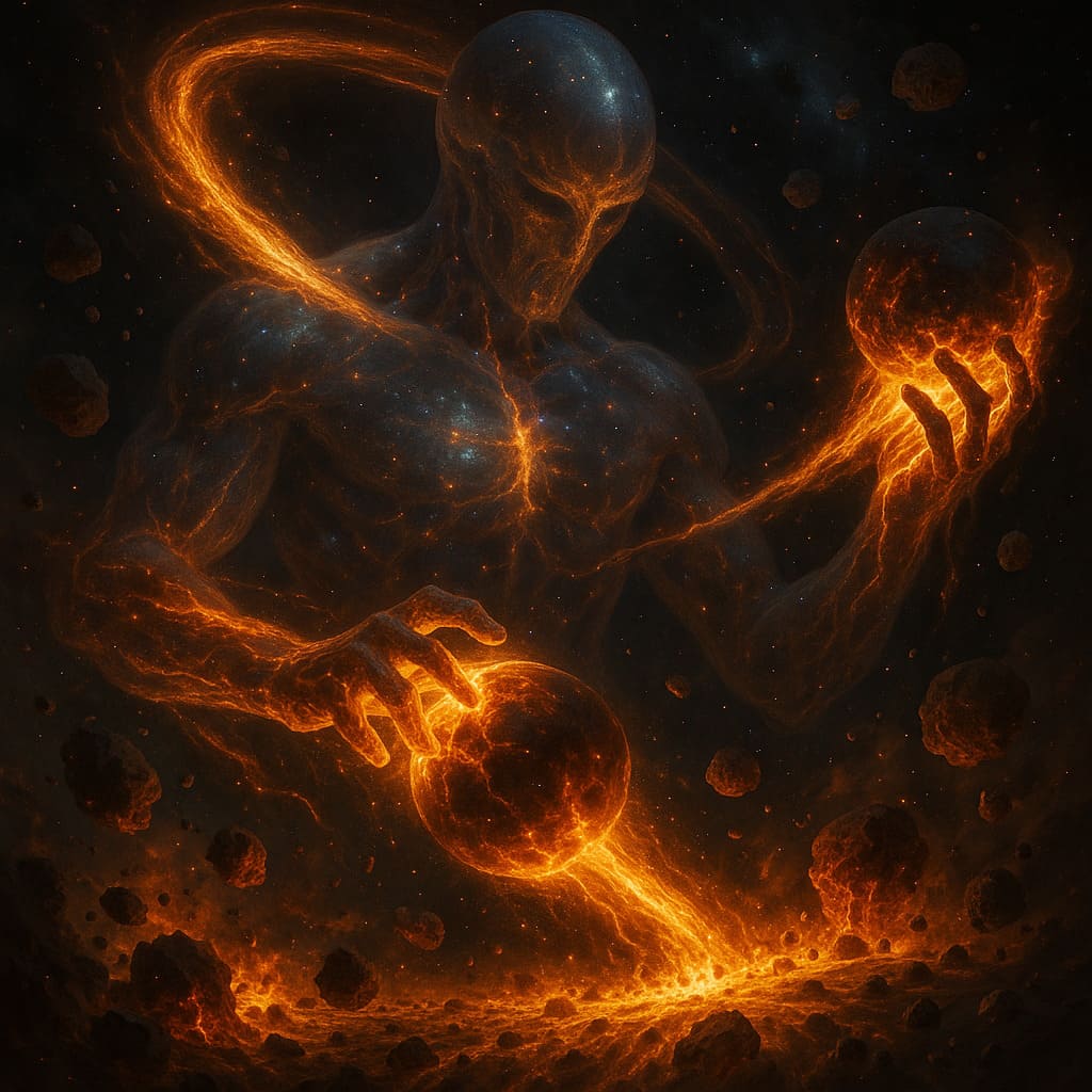 Description: Colossal cosmic beings consuming worlds - devourers of matter and energy, feeding upon the dying light of galaxies in an endless cosmic feast.
