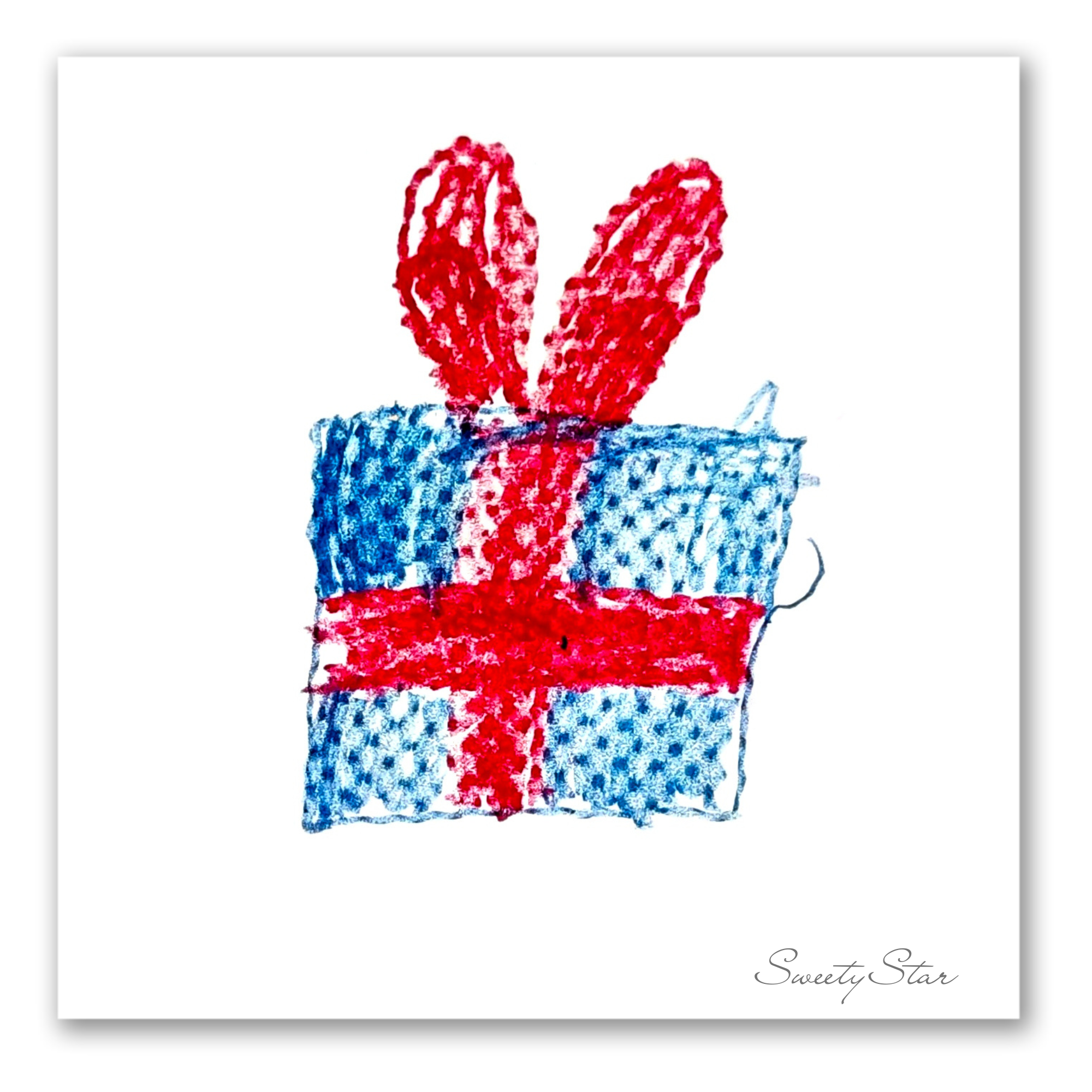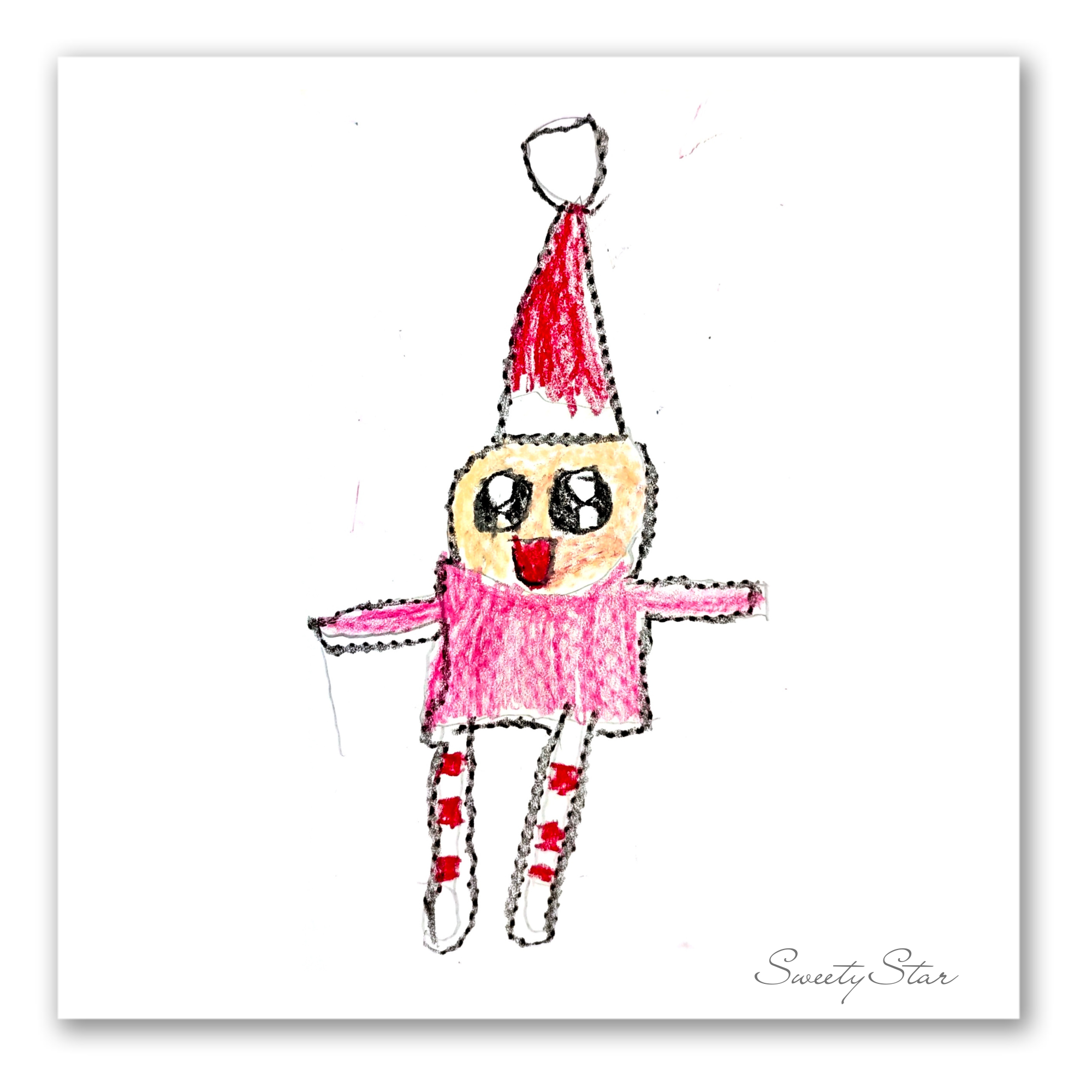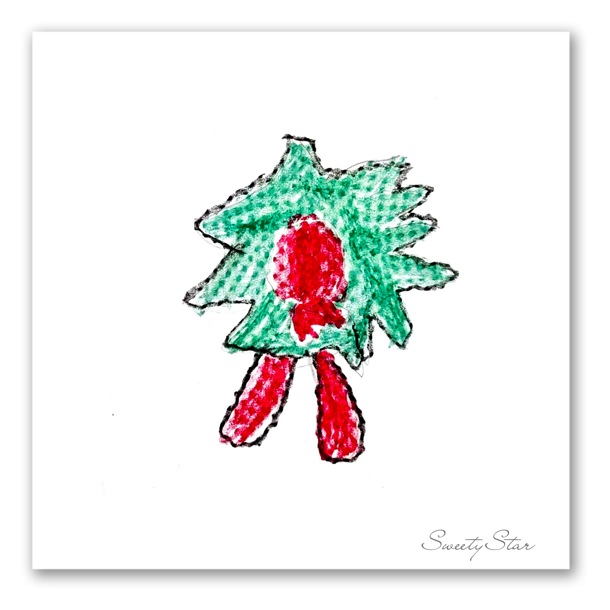 Description: A collection of Christmas-themed drawings by Sweety Star, featuring festive objects like gifts, trees, elves, and ornaments. Each scanned piece captures the simplicity, warmth, and genuine expression of a child's creative world.