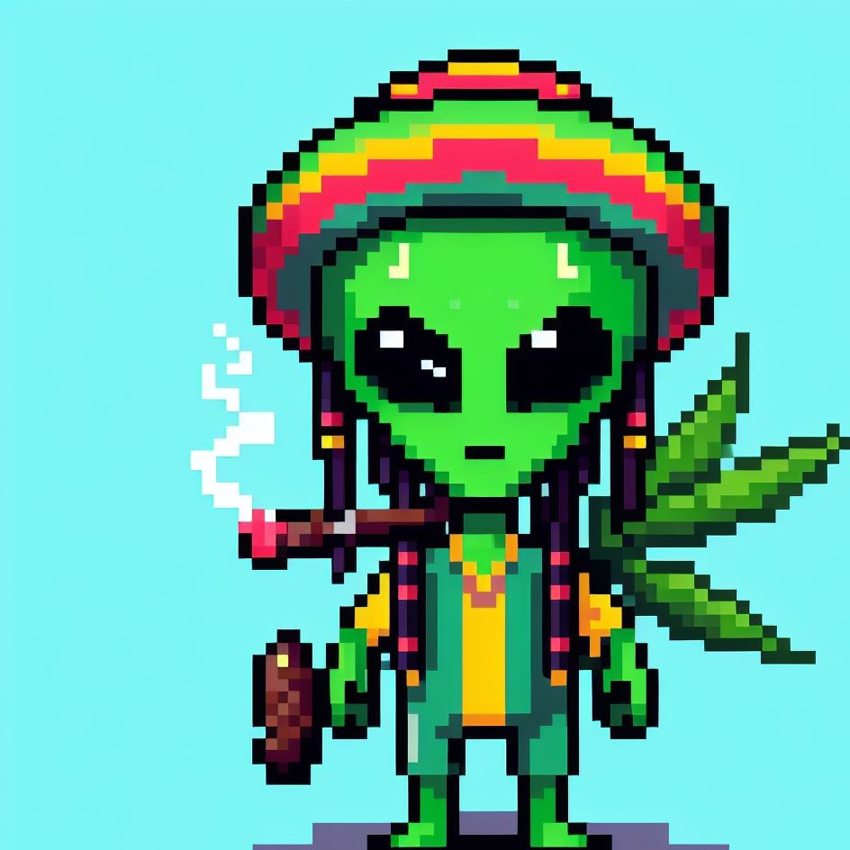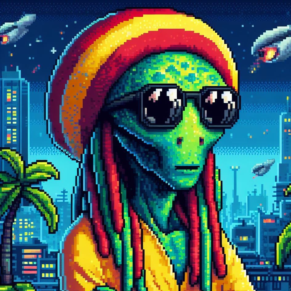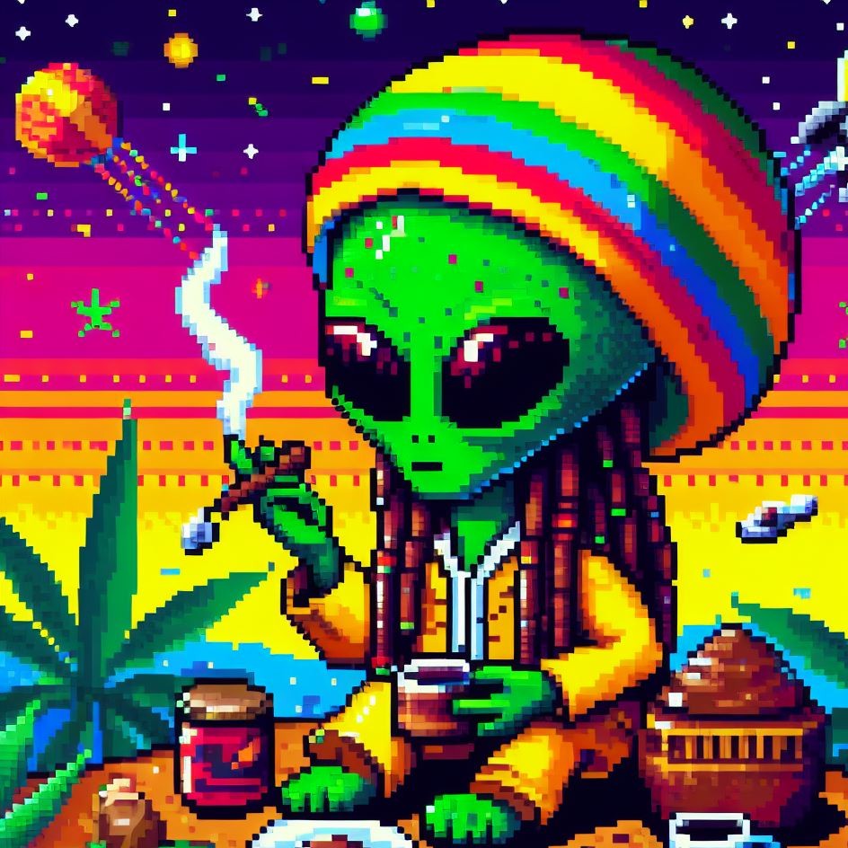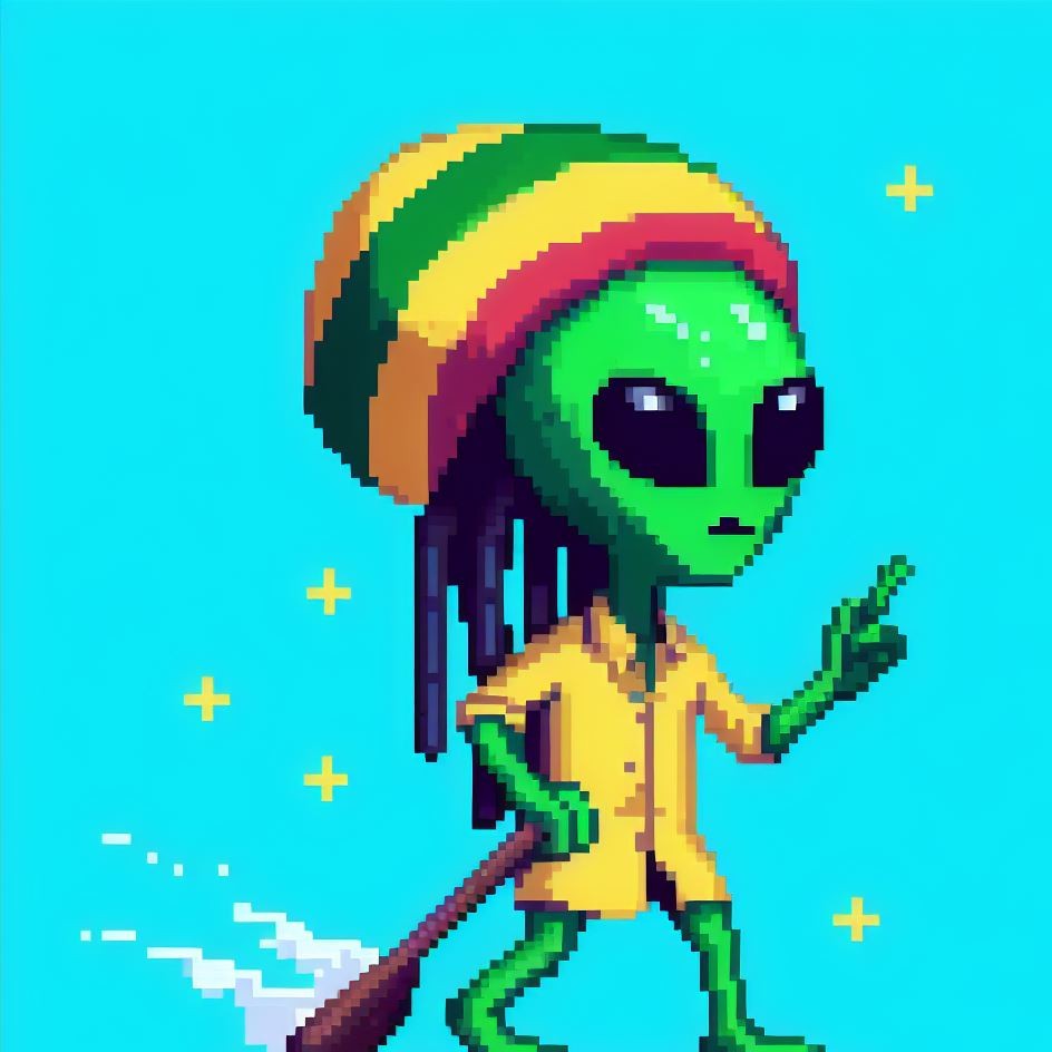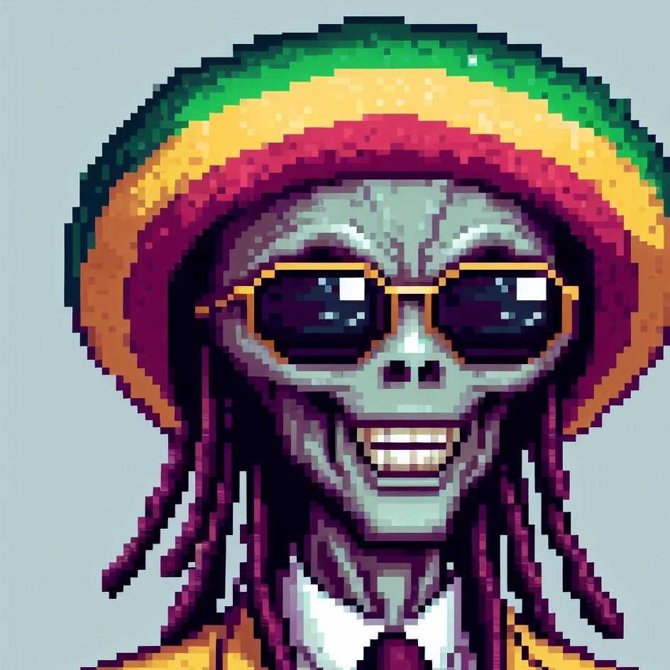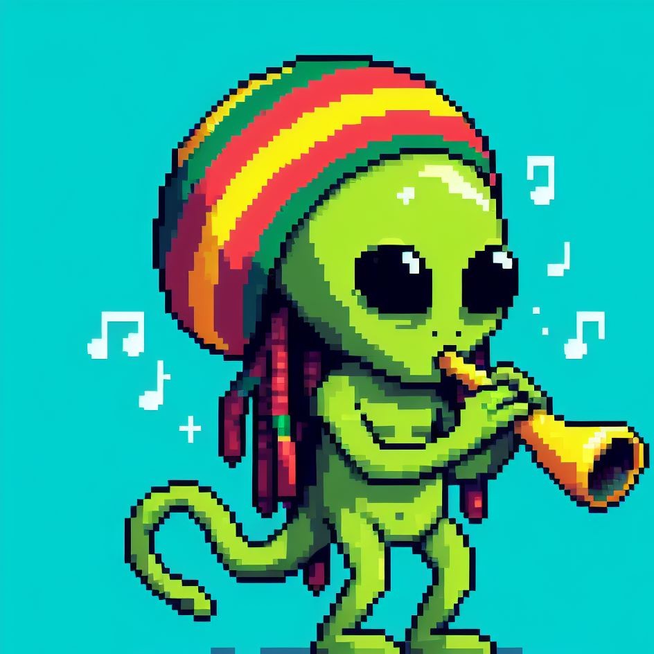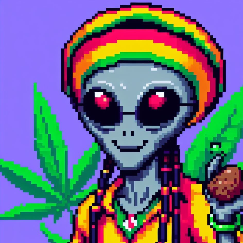 Description: Step into a world where interstellar vibes meet reggae rhythms as Alien Vibe, the Rasta Alien from Jamaica, takes you on a journey beyond the stars.