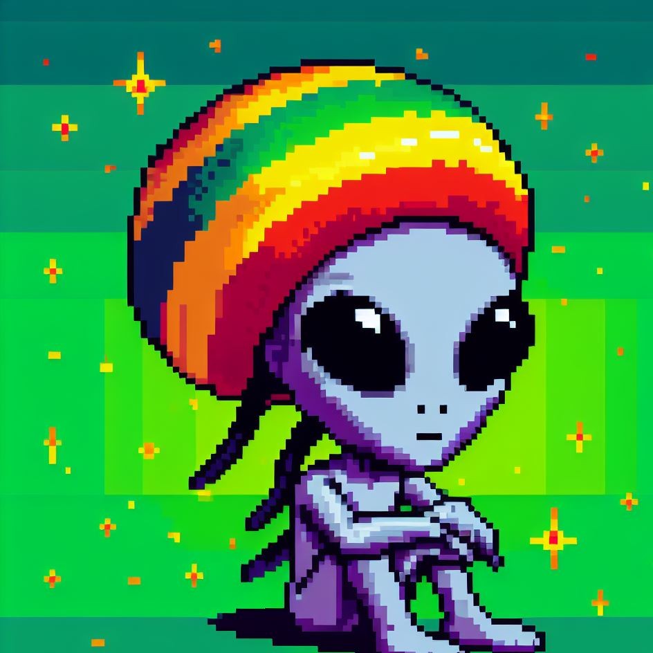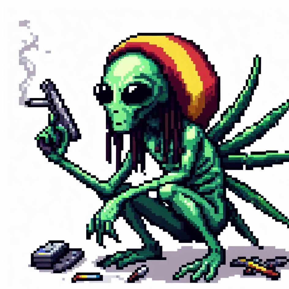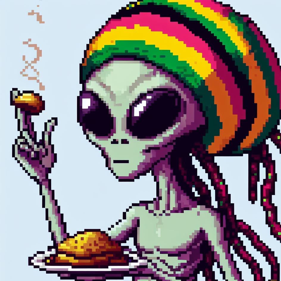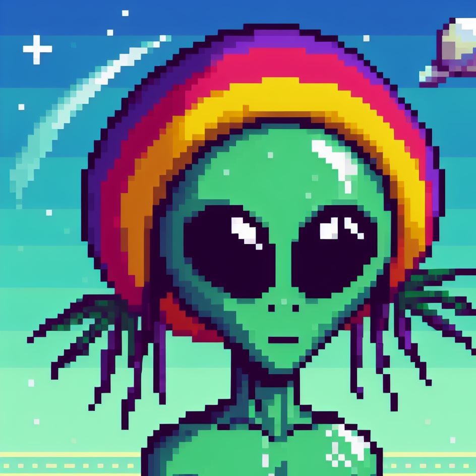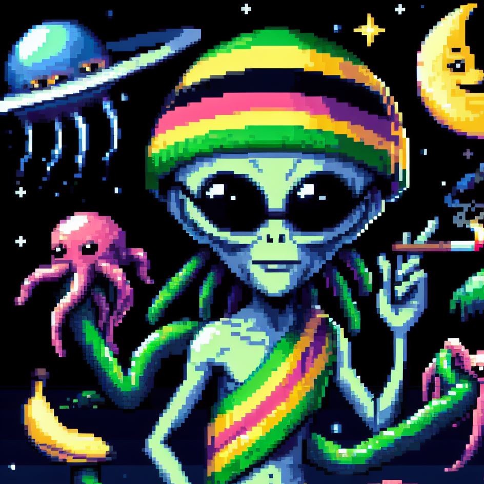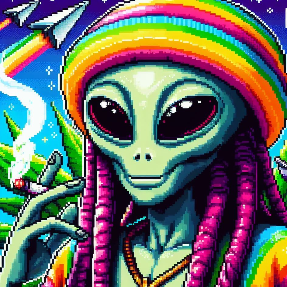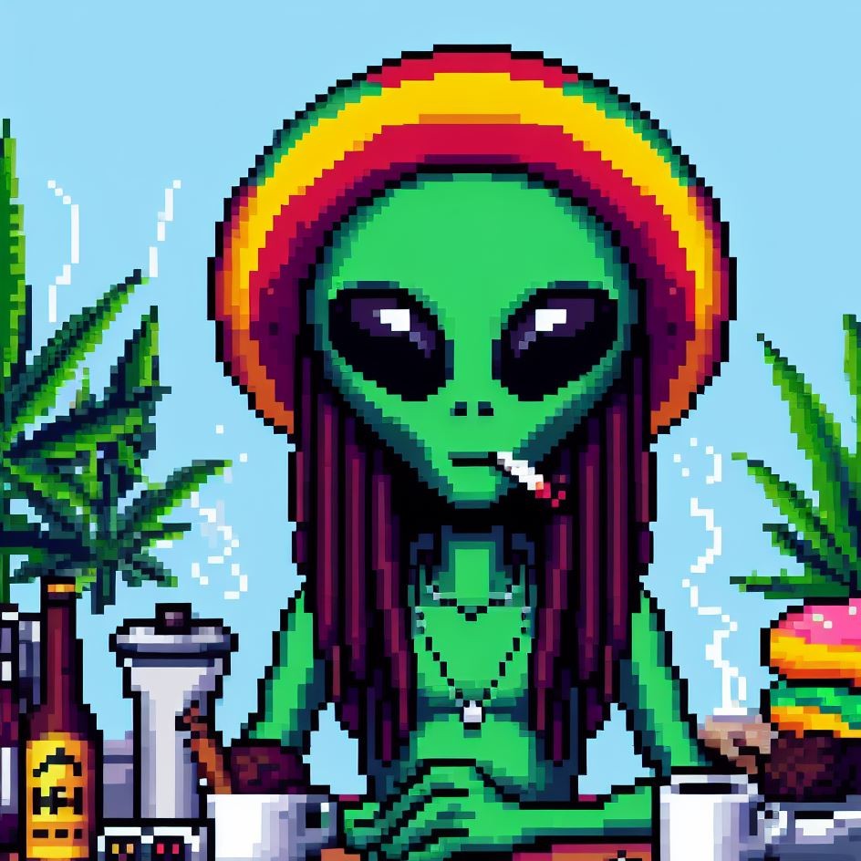 Description: Step into a world where interstellar vibes meet reggae rhythms as Alien Vibe, the Rasta Alien from Jamaica, takes you on a journey beyond the stars.