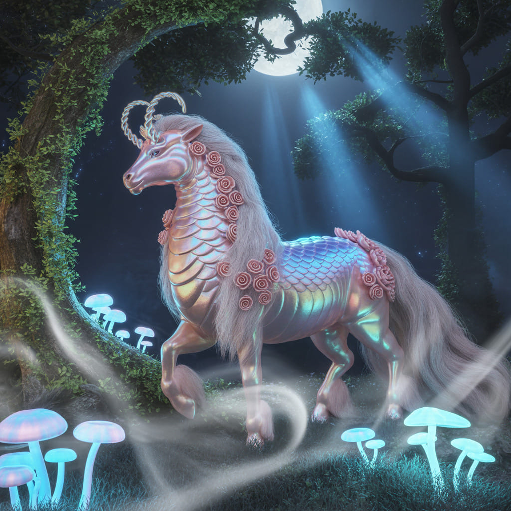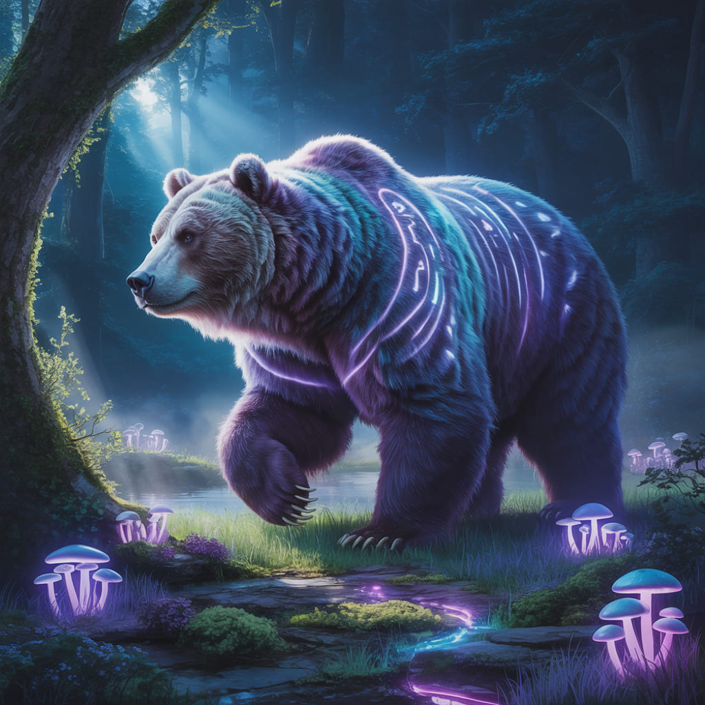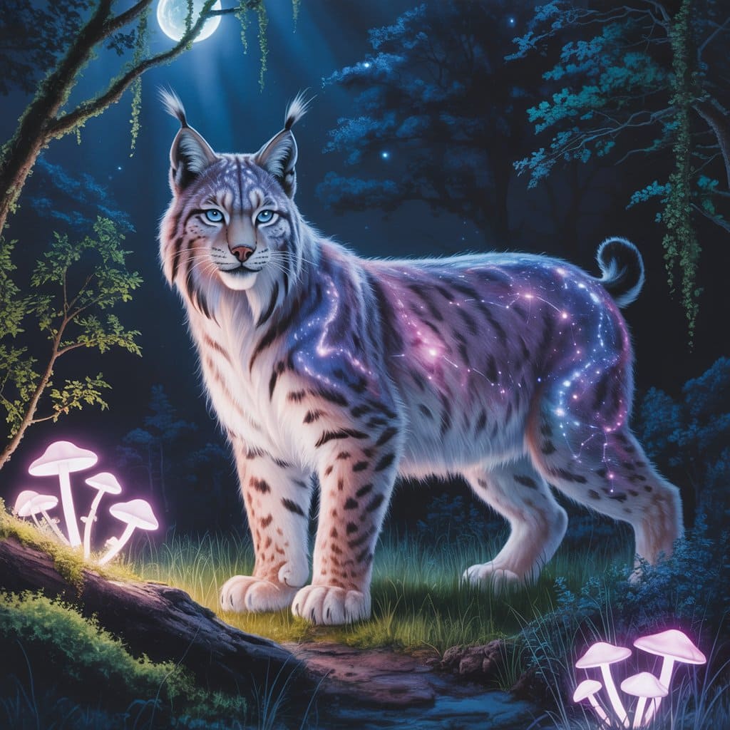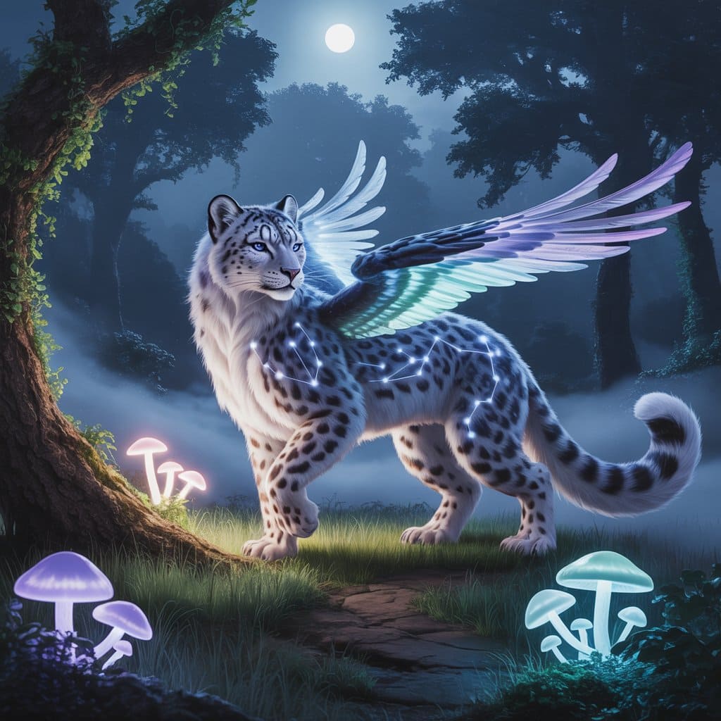 Description: A mystical world bathed in eternal twilight, where ethereal animals radiate a soft, inner light. In this dreamlike realm, time flows gently and magic pulses through every living being.