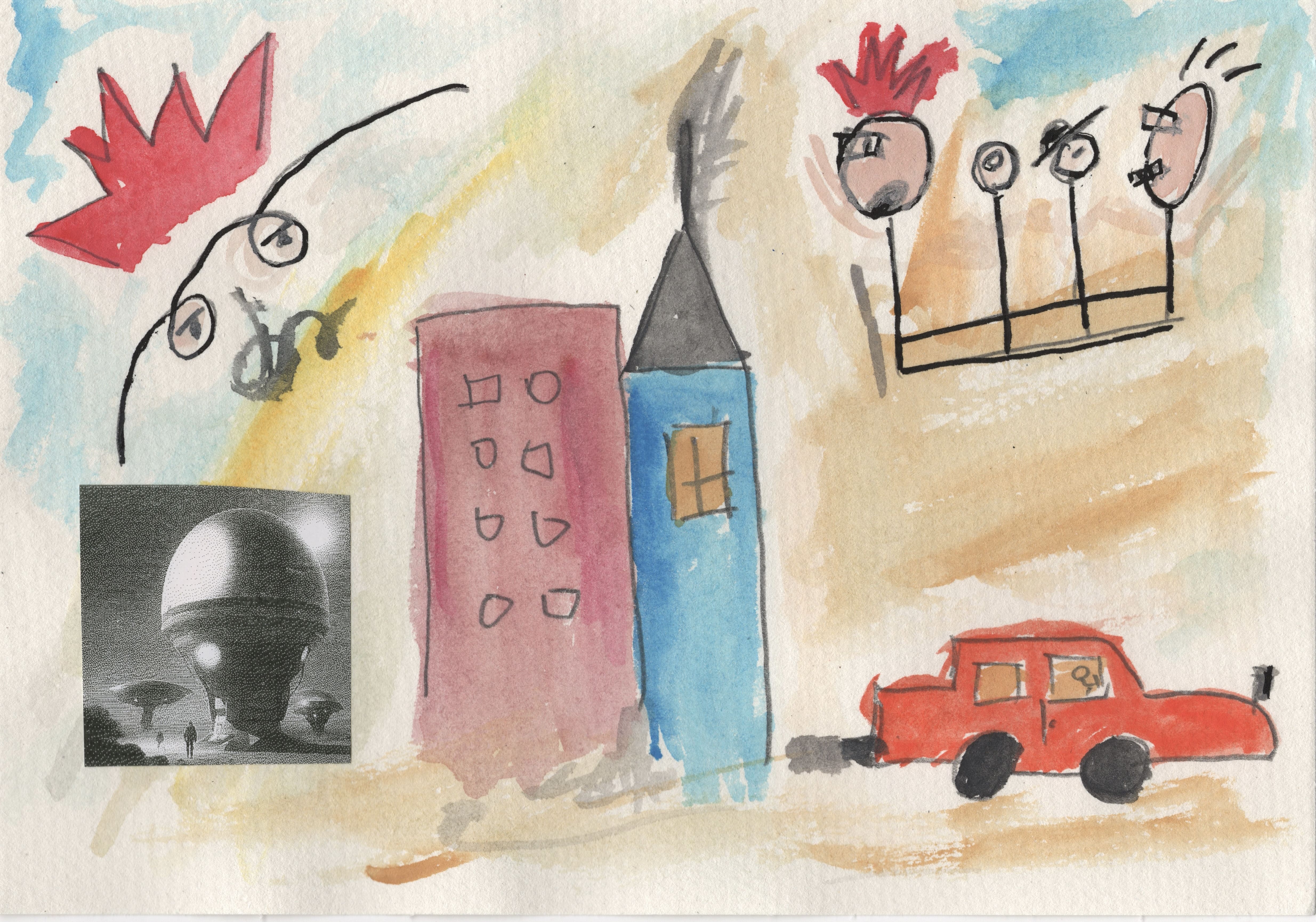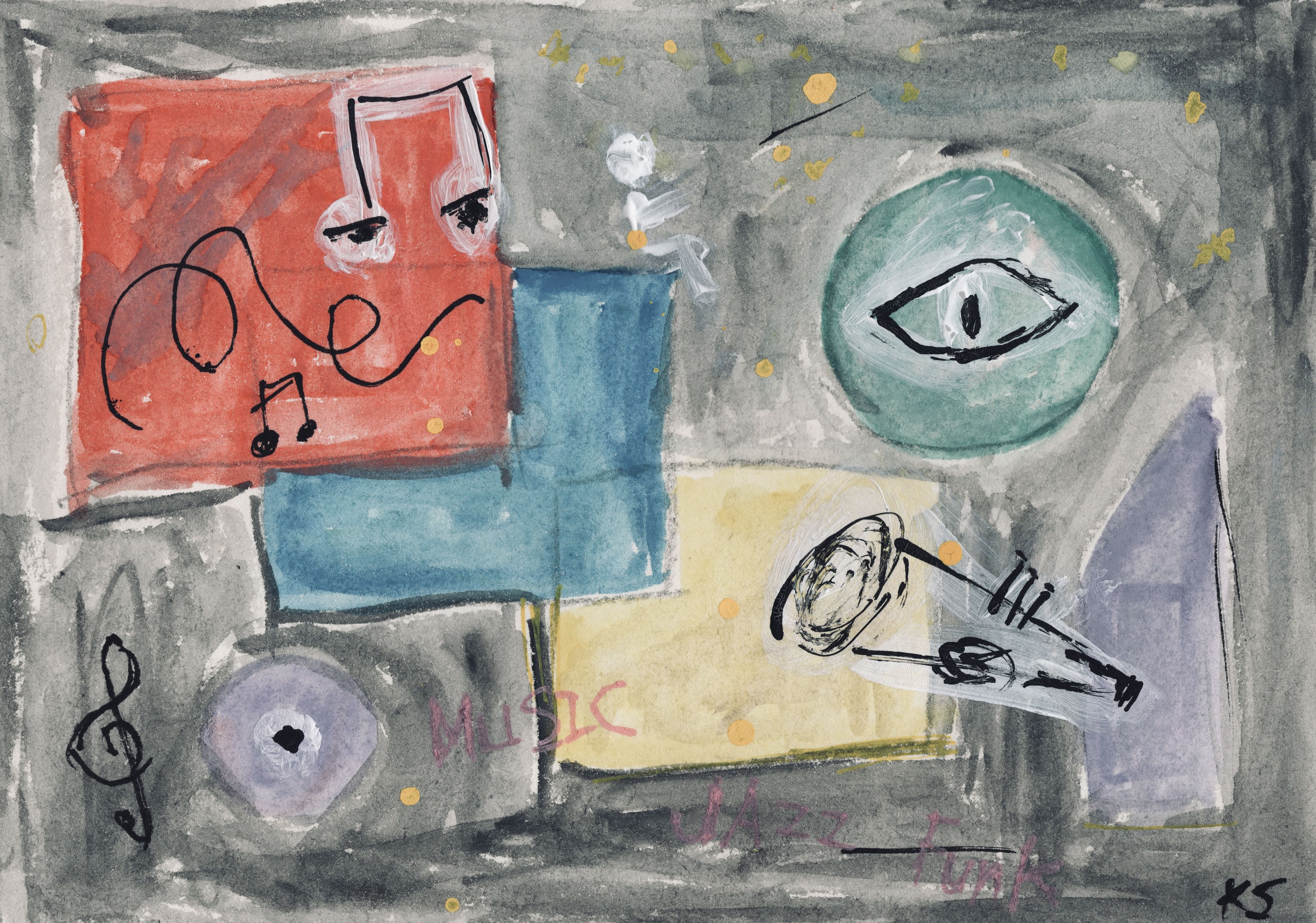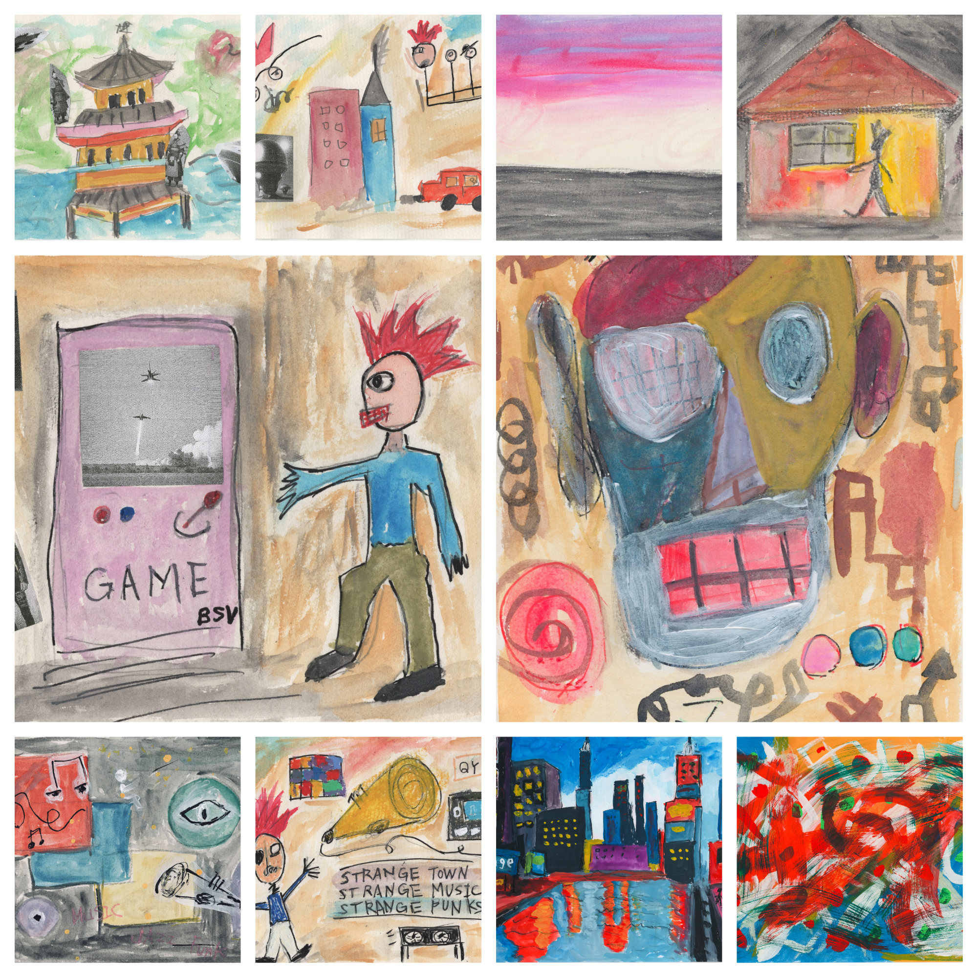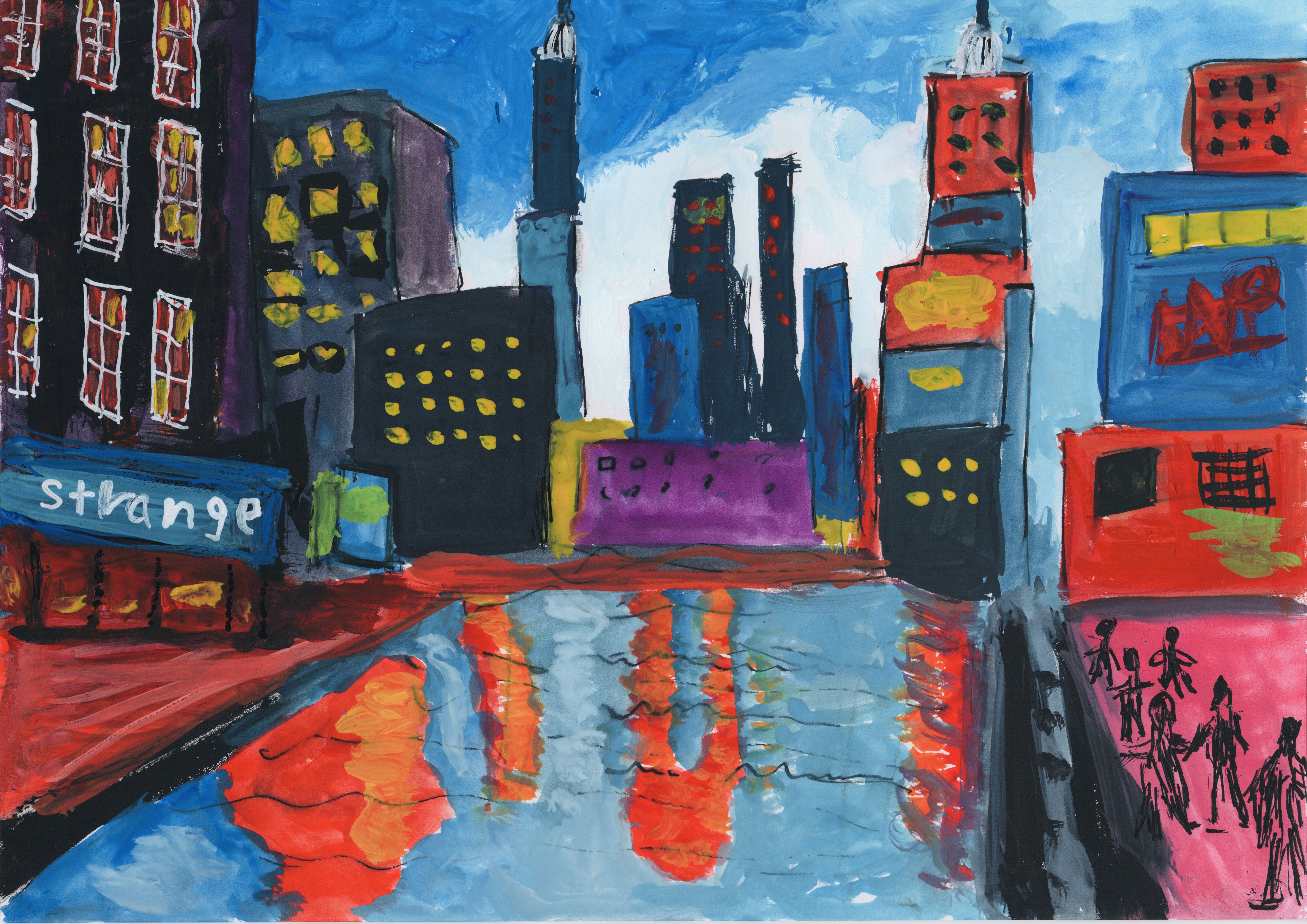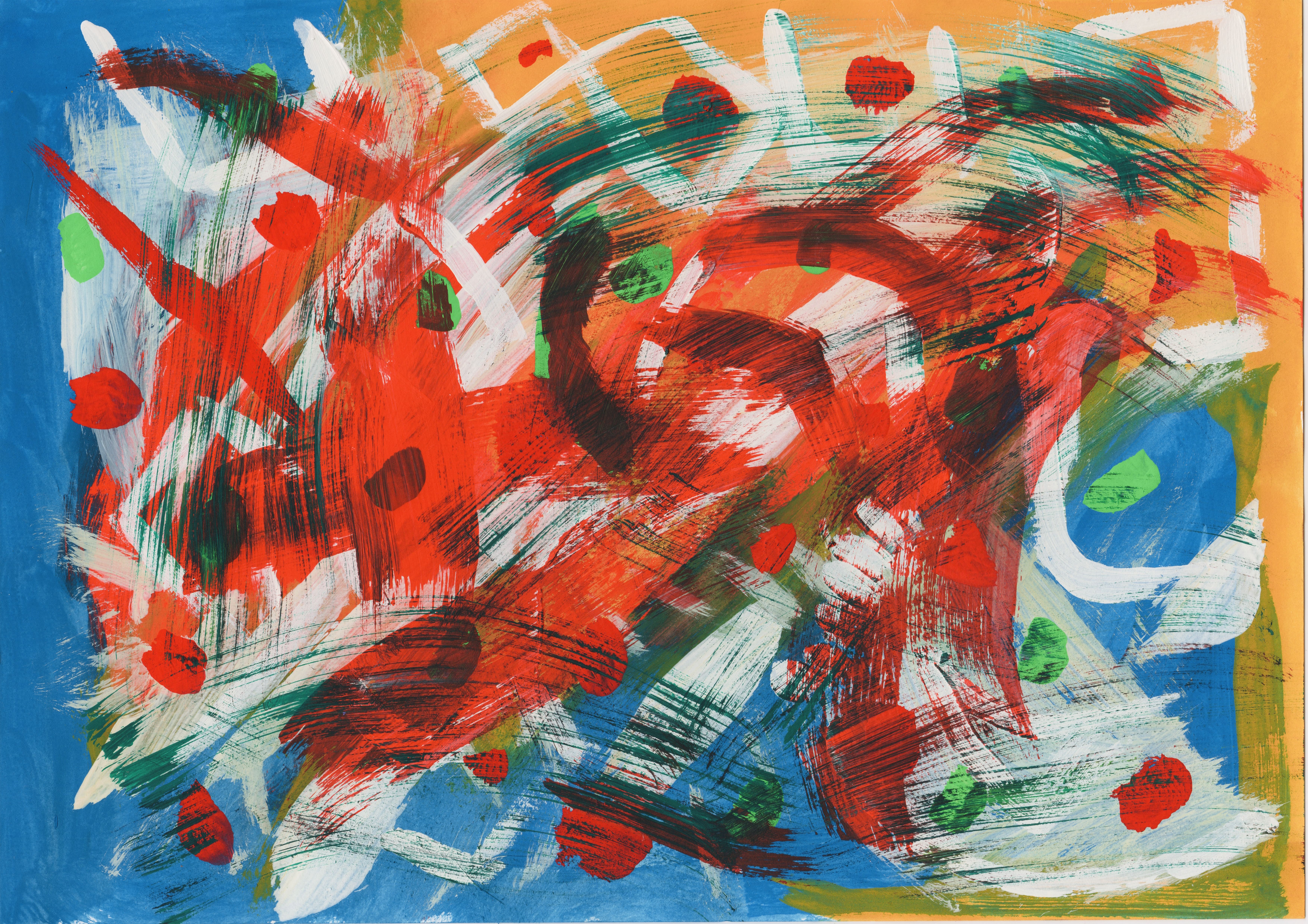 Description: Acrylics, watercolors, oil pastels, and POSCA.