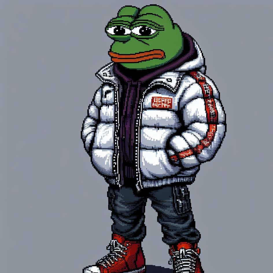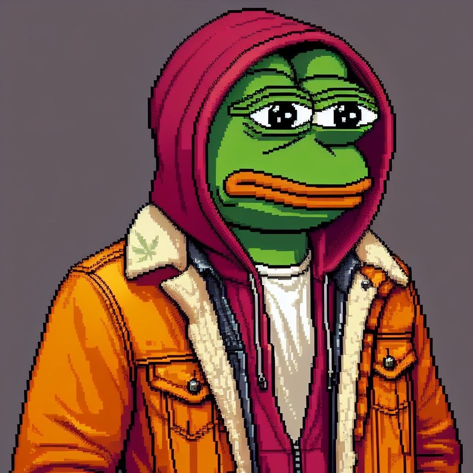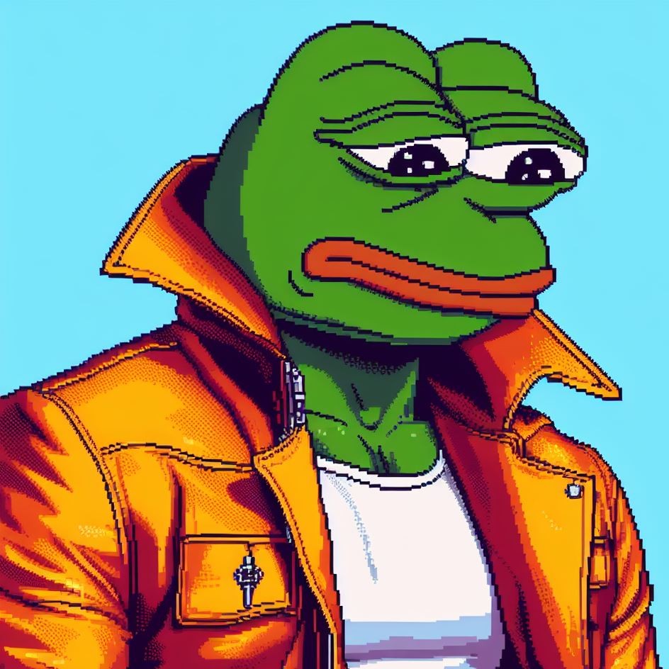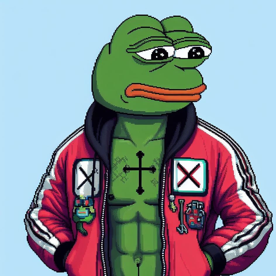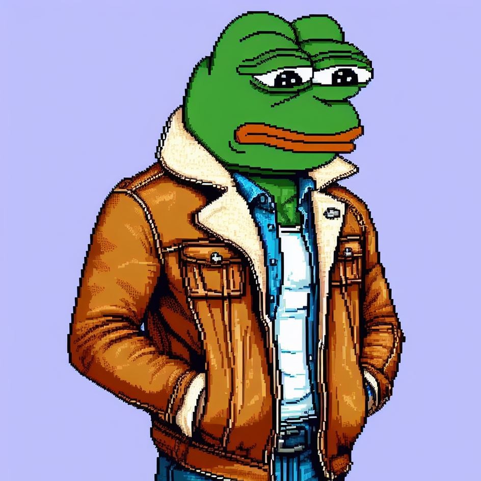 Description: Pepe adorning these virtual jackets is a unique masterpiece