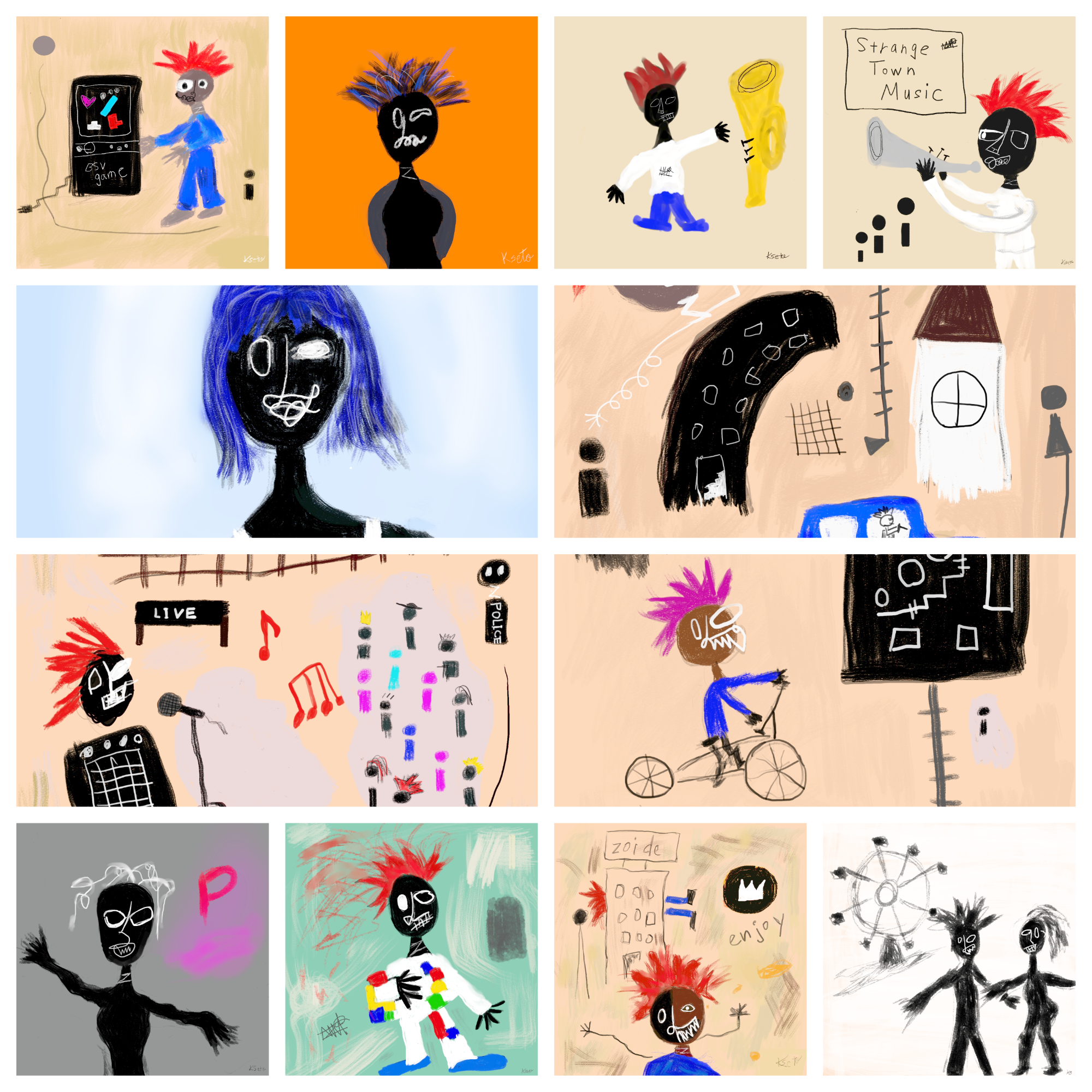 Description: Here are some of the funniest punks in Strange Town. They truly enjoy living in Strange Town. You can see it in their expressions. Let's have fun together!